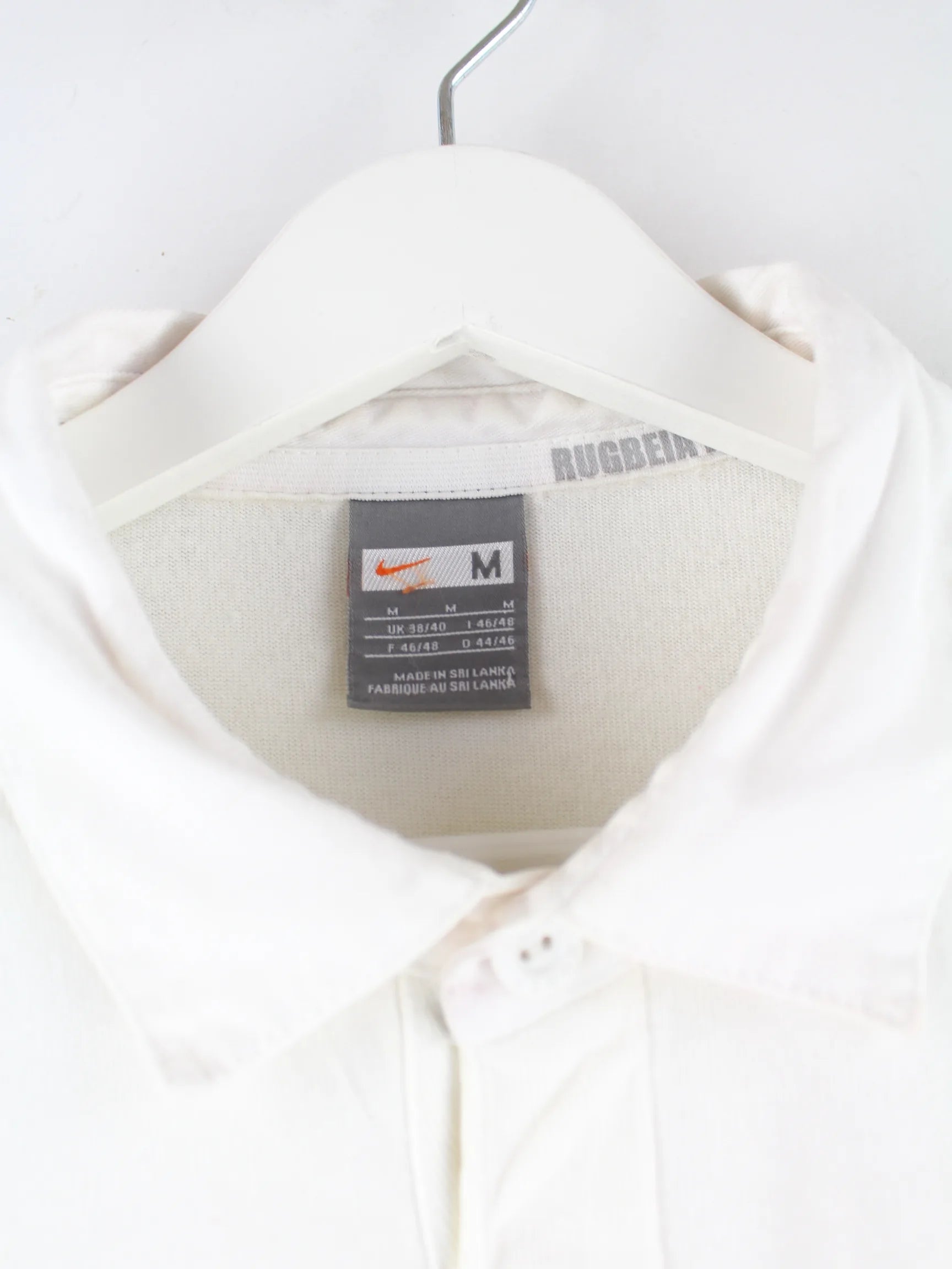 Nike y2k Rose Bowl England Rugby Langarm Polo Weiß M