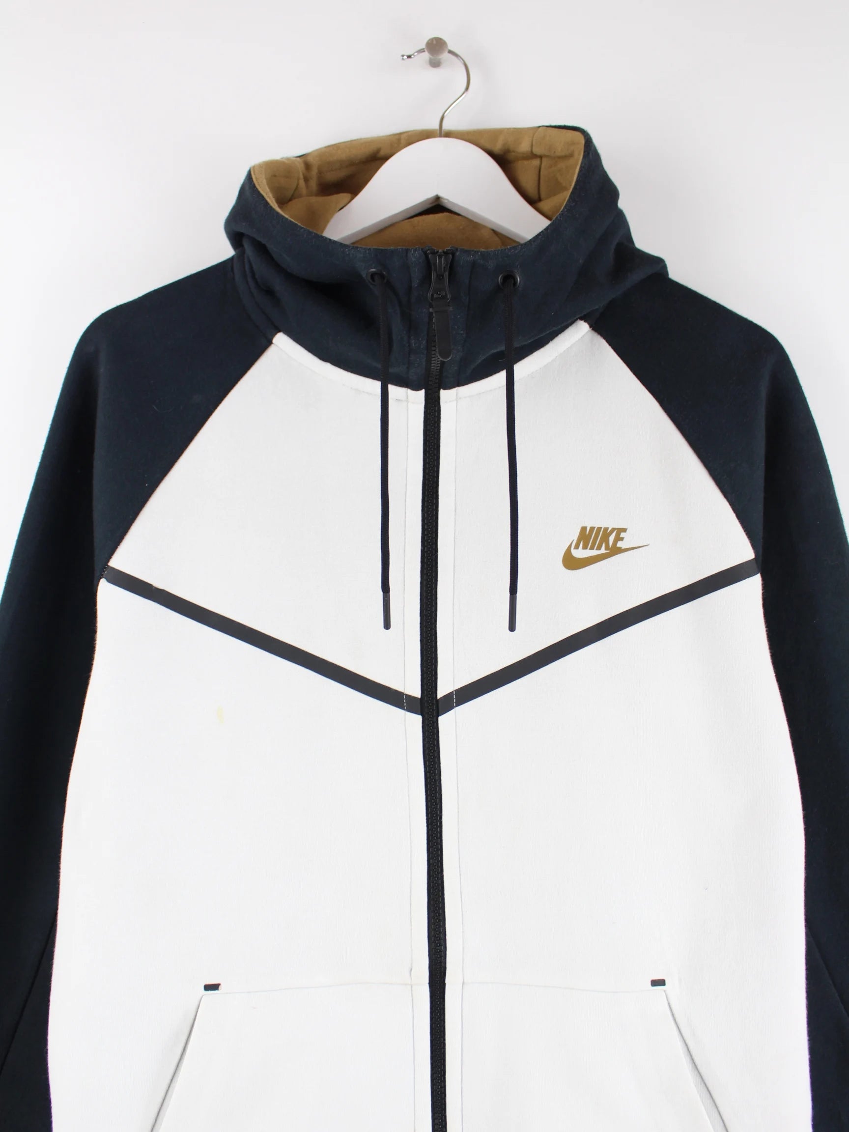 Weißer Hoodie mit Reißverschluß der Marke Nike in Größe L. Er ist aus einer Baumwollmischung gemacht. Den Zustand würden wir als 'In Ordnung' bezeichnen (vergl. Bilder).