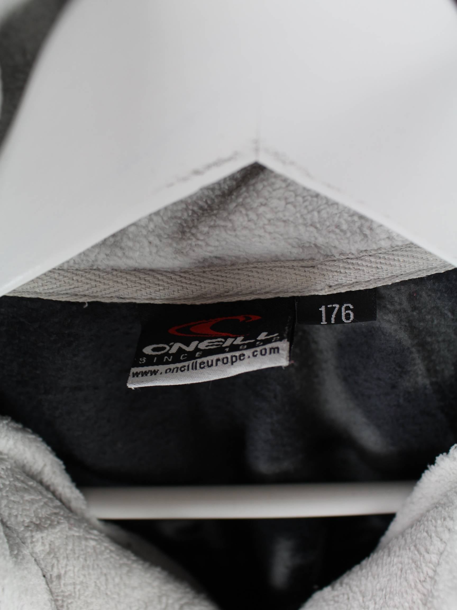 Sweater vom Brand O'Neill in Größe S aus den 90'ern. Er ist aus weichem Fleece und in Grau zu haben.
