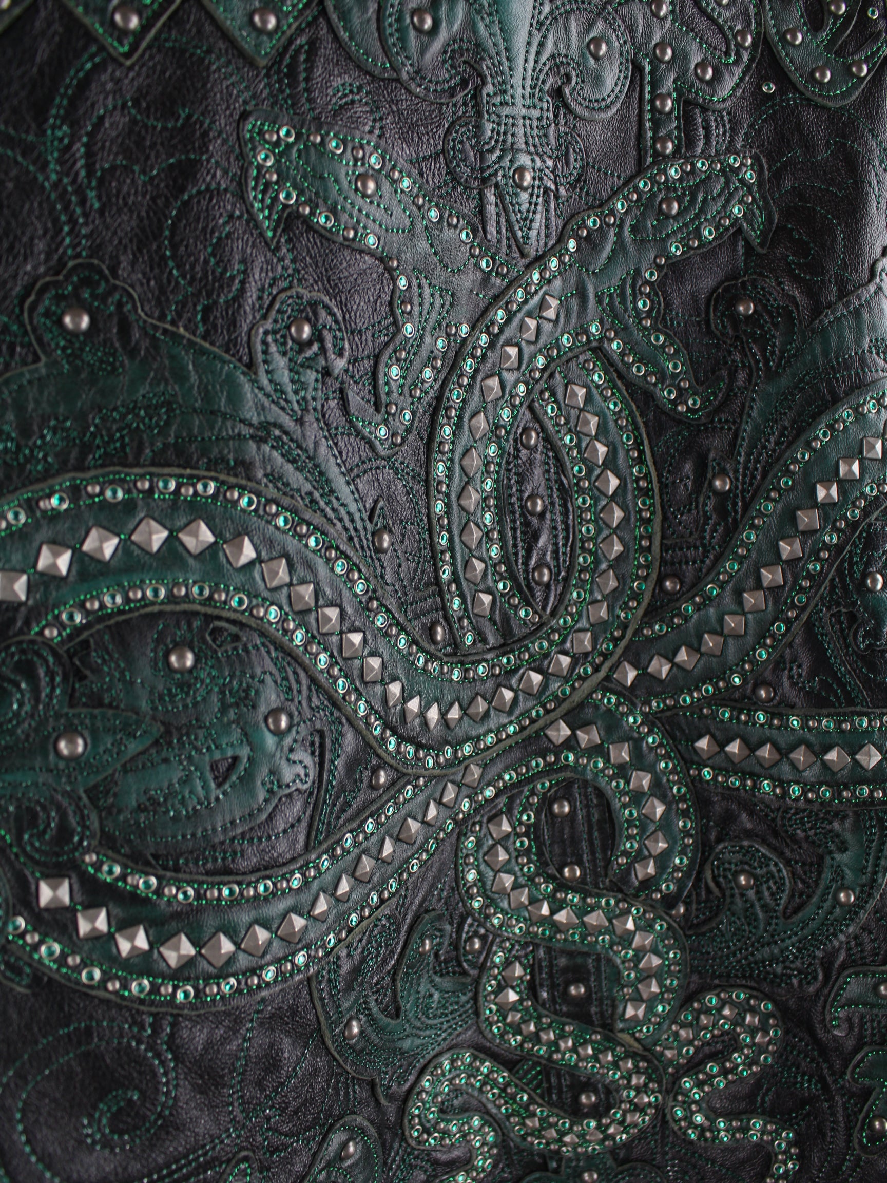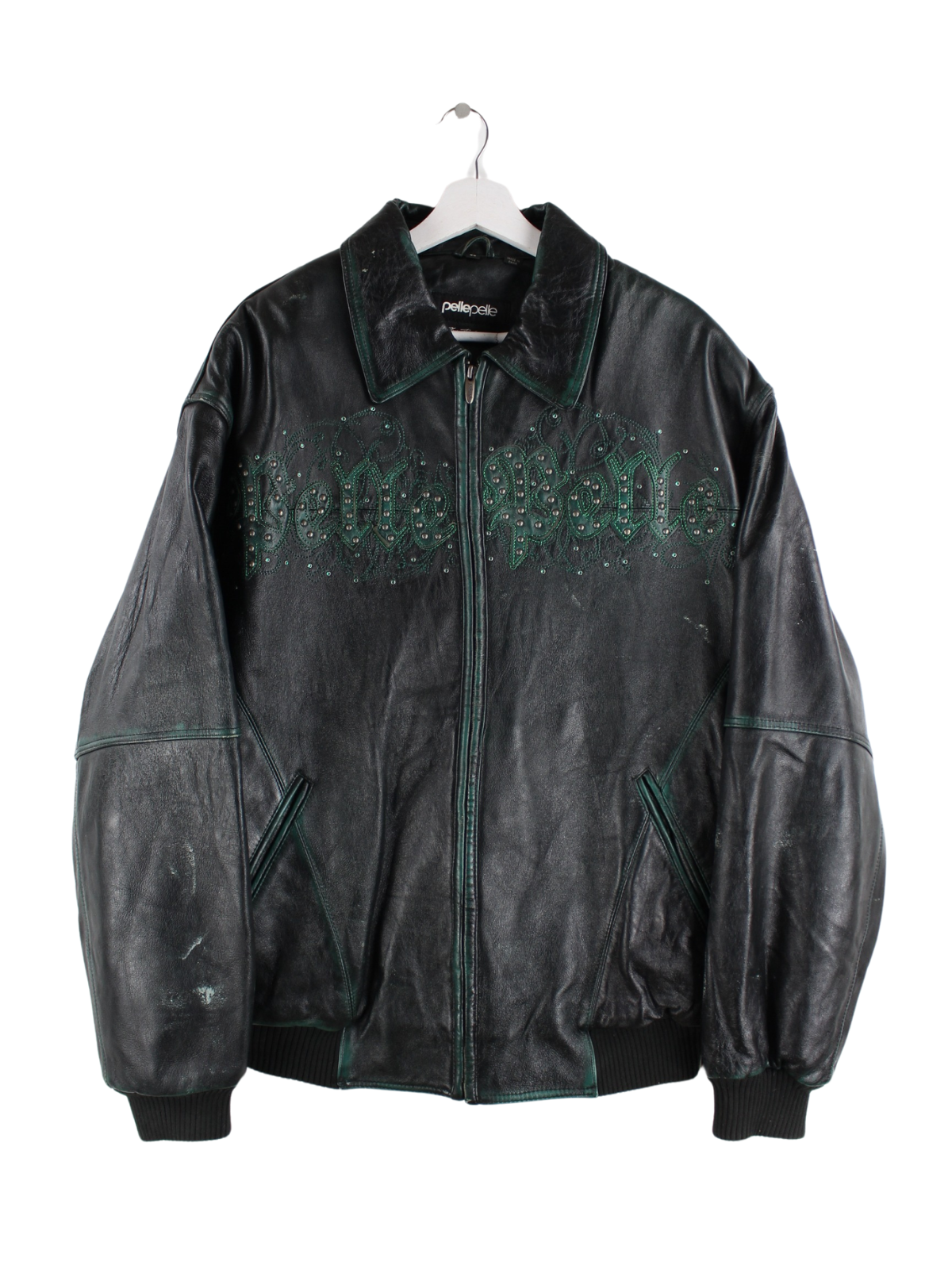 Grüne Jacke des Labels Pelle Pelle aus den 90'ern in Größe XXL. Sie ist aus Leder angefertigt. Den Zustand würden wir als 'In Ordnung' bezeichnen (vergl. Bilder).