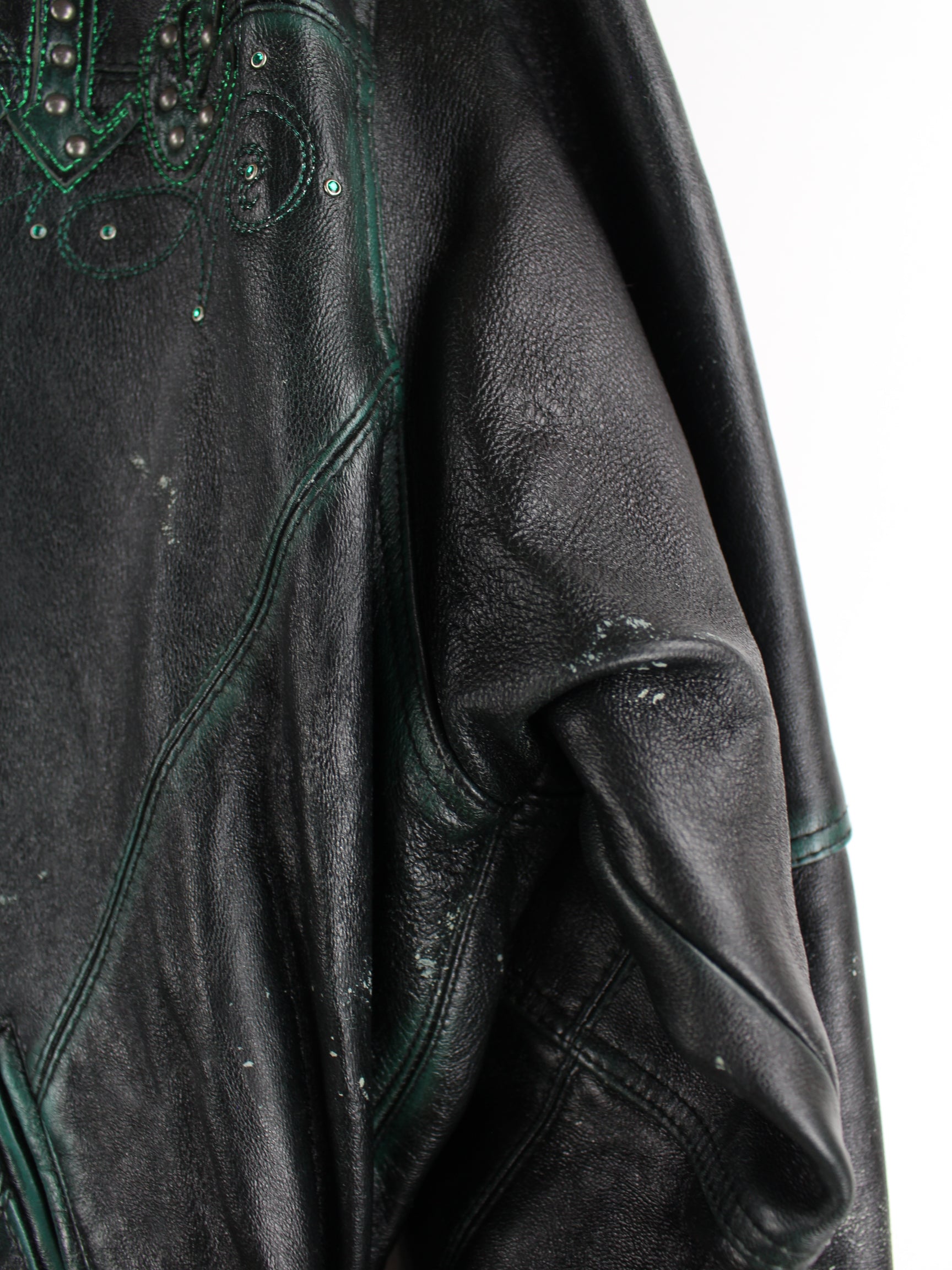 Pelle Pelle 90s Vintage Marc Buchanan College Leder Jacke Grün XXL