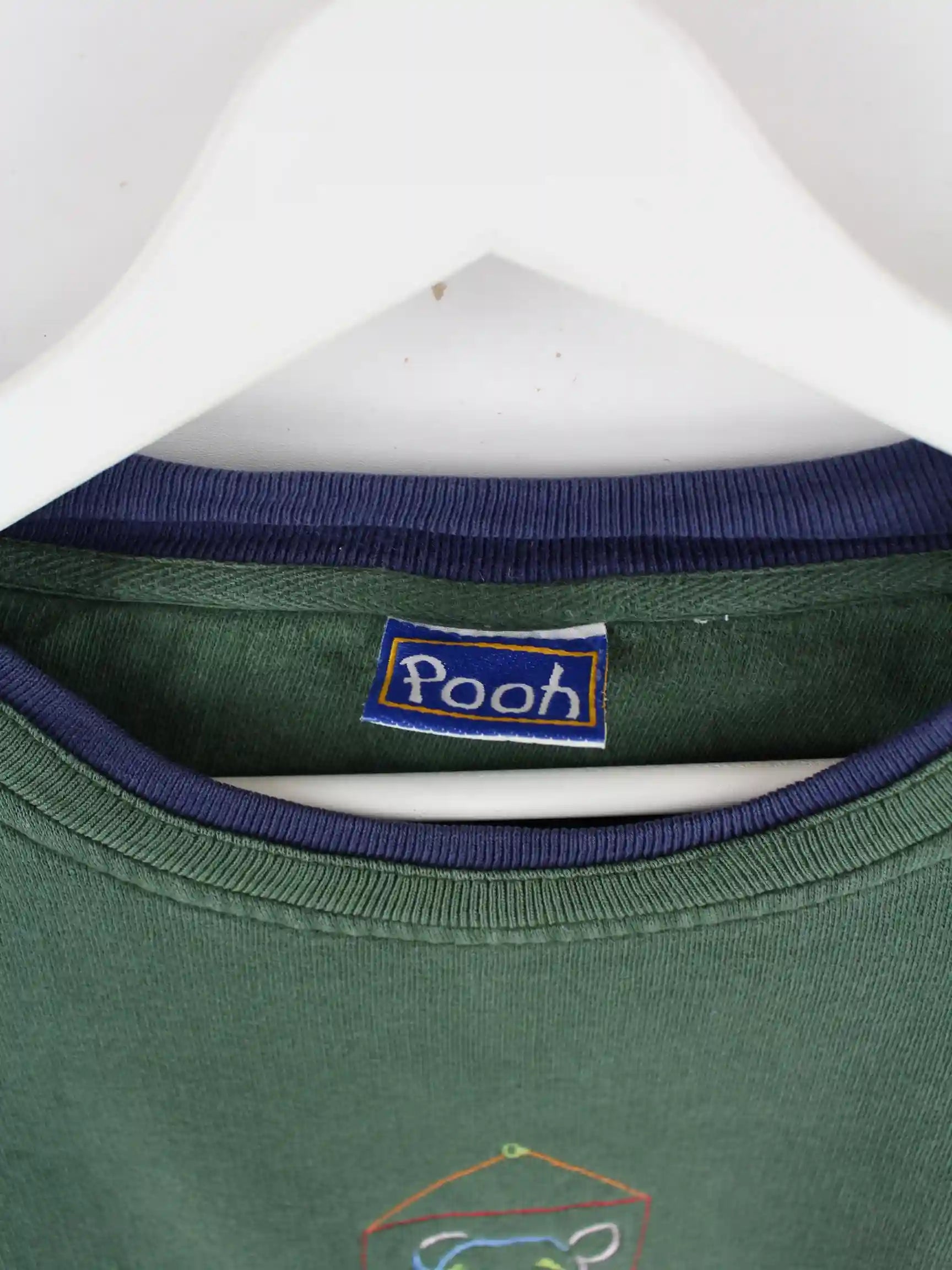 Grüner Sweater mit Stick des Labels Pooh aus den 90'ern in Größe S. Er ist aus einer Baumwollmischung hergestellt und in gutem Zustand zu bekommen.