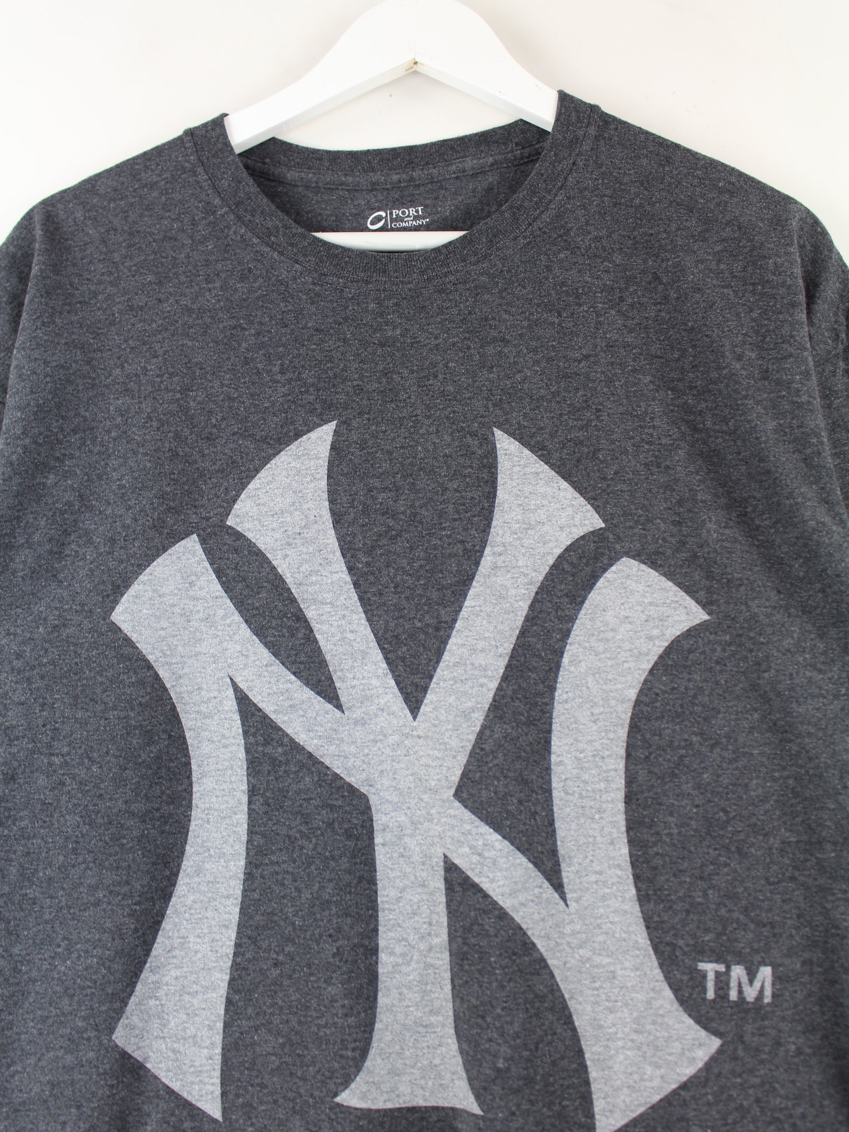 Graues T-Shirt vom Label Port & Company in Größe XL. Es ist aus Baumwolle hergestellt und in sehr gutem Zustand lieferbar. Mit chiquem Yankees Print.
