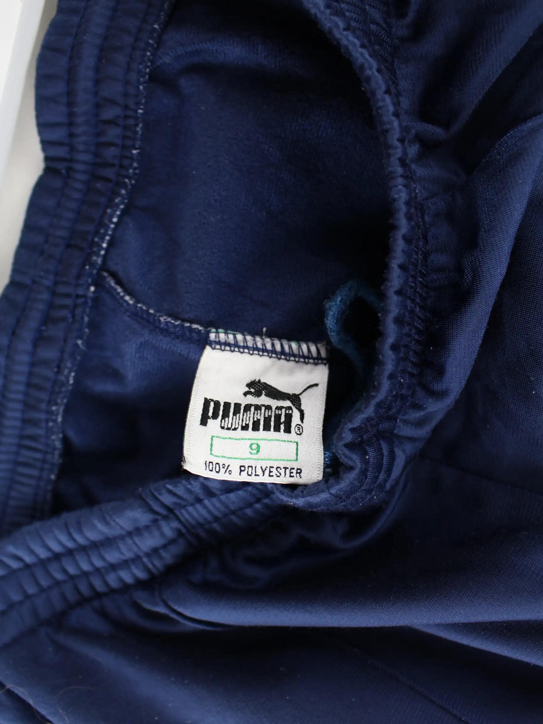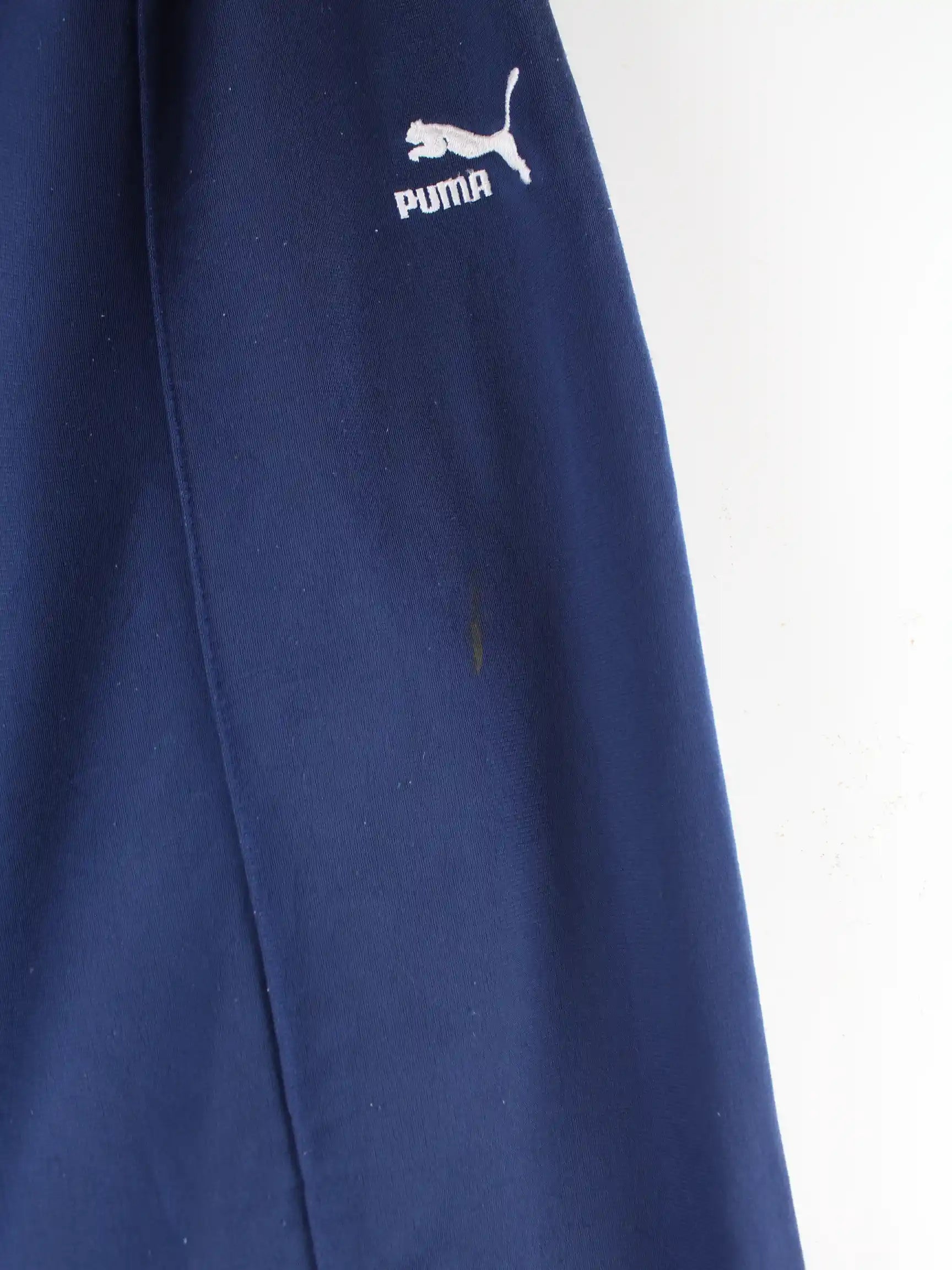 Track Pants der Marke Puma in Größe L aus den 90'ern. Sie sind aus Synthetik produziert und in Blau bei uns zu bekommen.