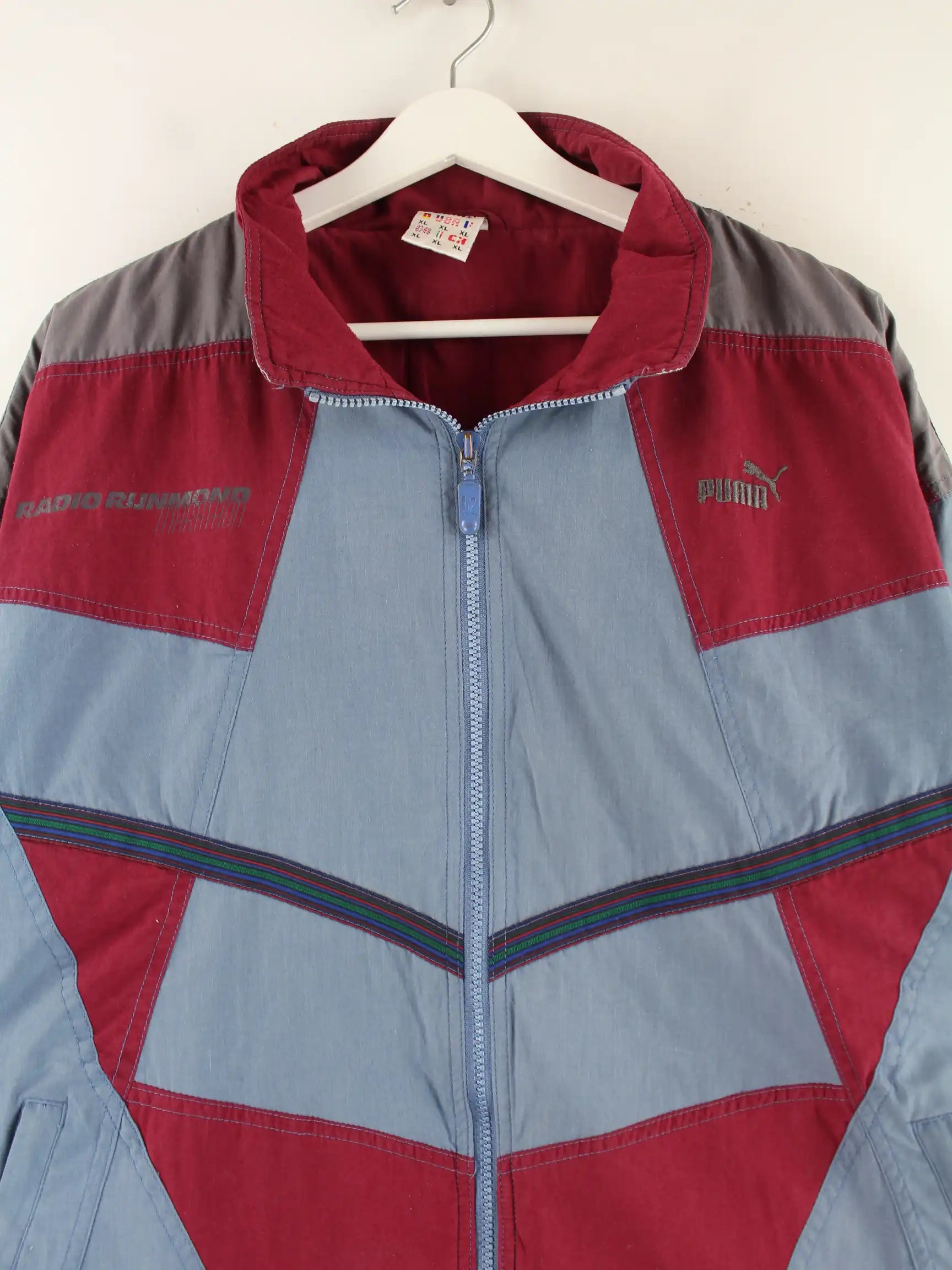 Trainingsjacke vom Label Puma in Größe XL aus den 90'ern. Sie ist aus Synthetik gemacht und in Grau lieferbar.
