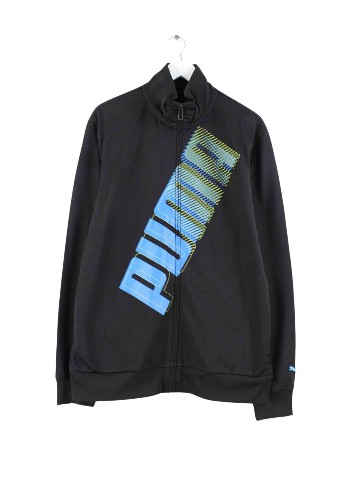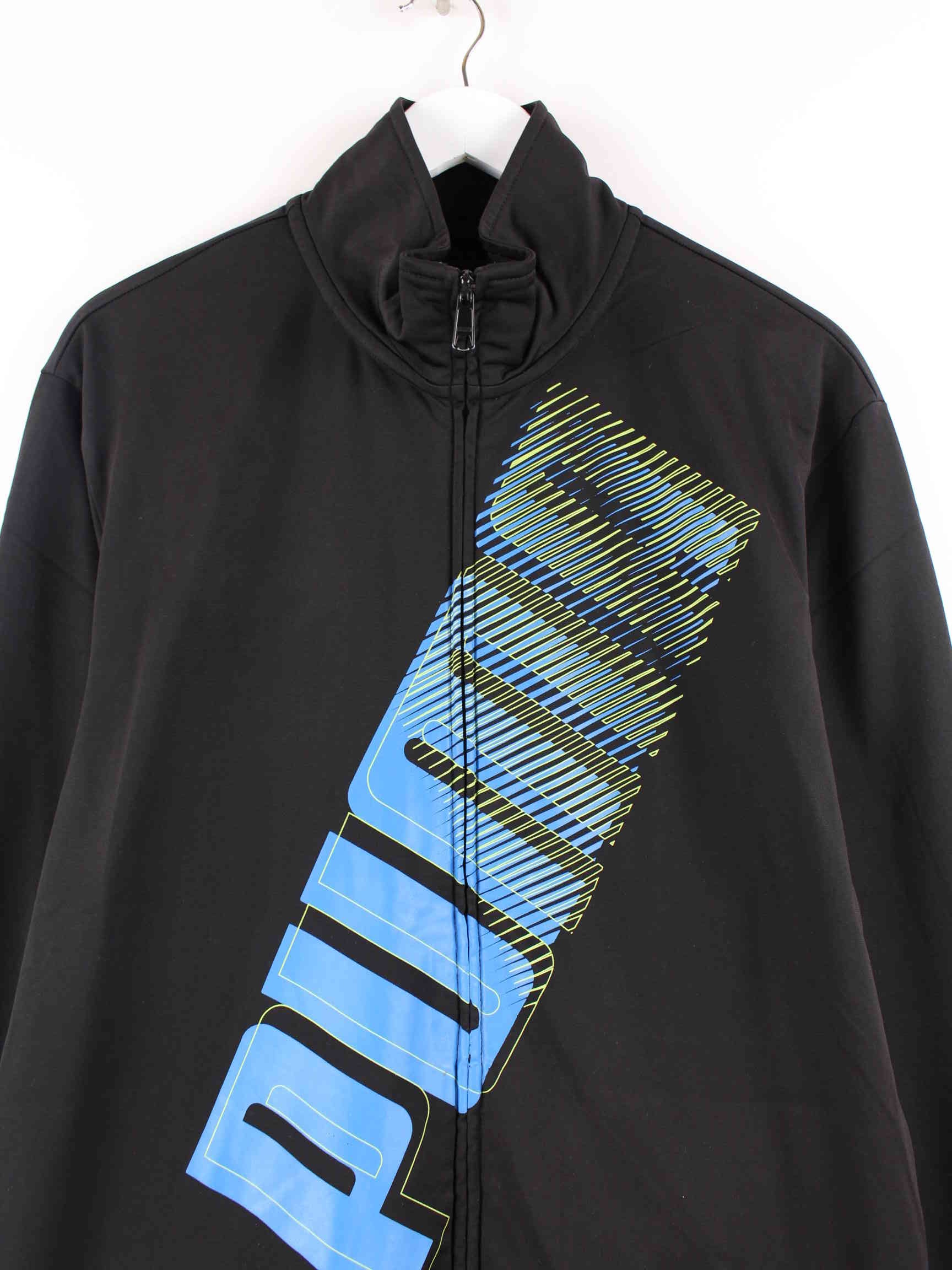 Trainingsjacke vom Label Puma in Größe XL. Sie ist aus Synthetik produziert und in Schwarz im Angebot. Mit schönem Print.