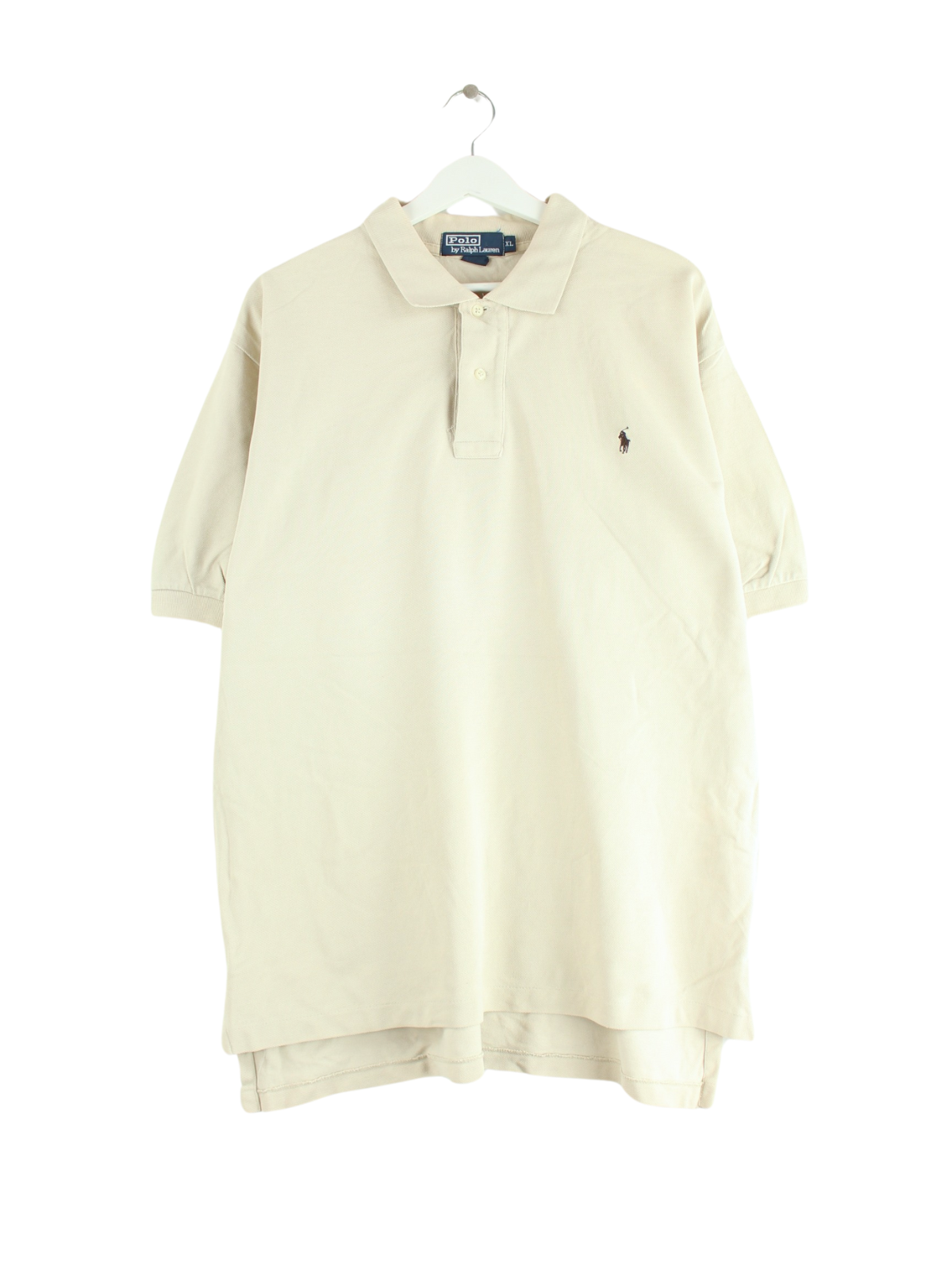 Beigefarbenes Poloshirt der Marke Ralph Lauren aus den 90'ern in Größe XL. Es ist aus Baumwolle produziert und in sehr gutem Zustand in Stock.
