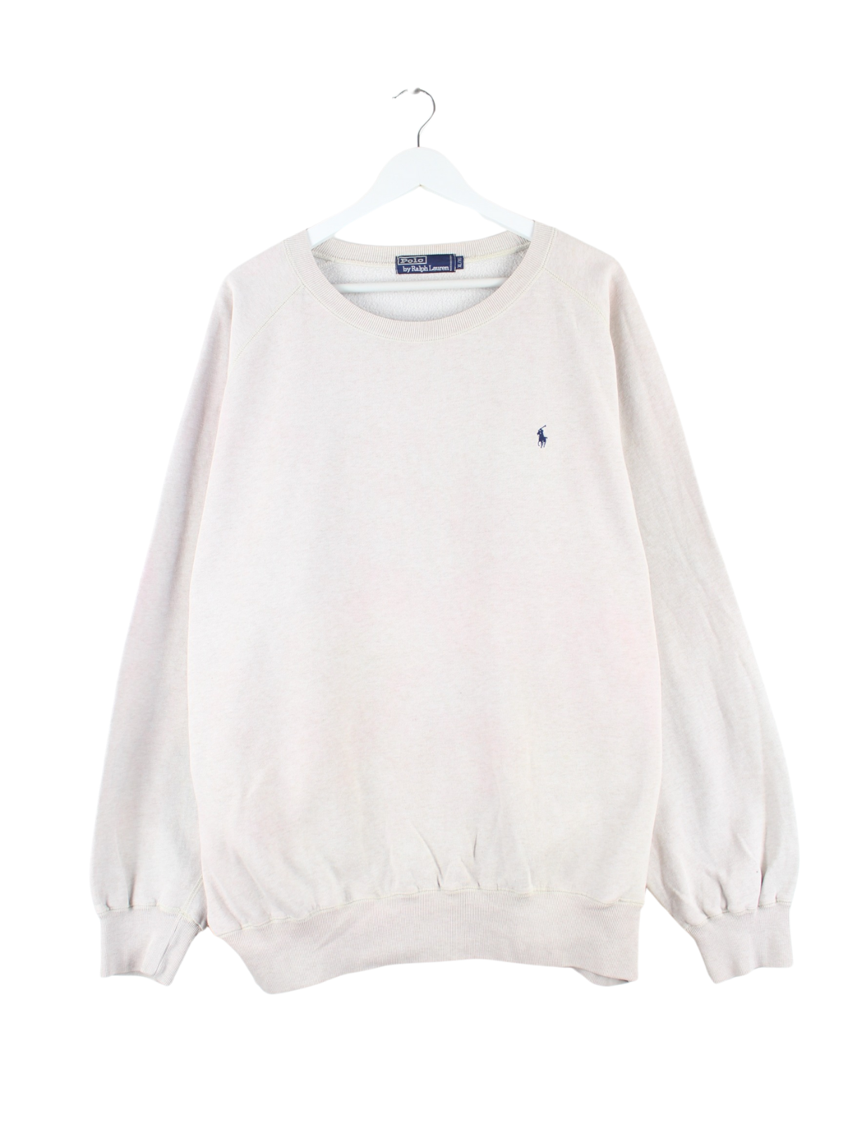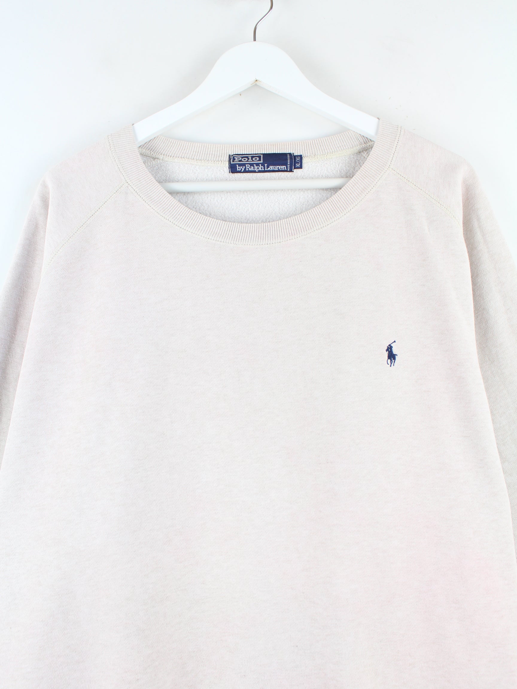 Beigefarbener Sweater der Brand Ralph Lauren aus den 90'ern in Größe XL. Er ist aus einer Baumwollmischung hergestellt. Den Zustand würden wir als 'In Ordnung' bezeichnen (vergl. Bilder).