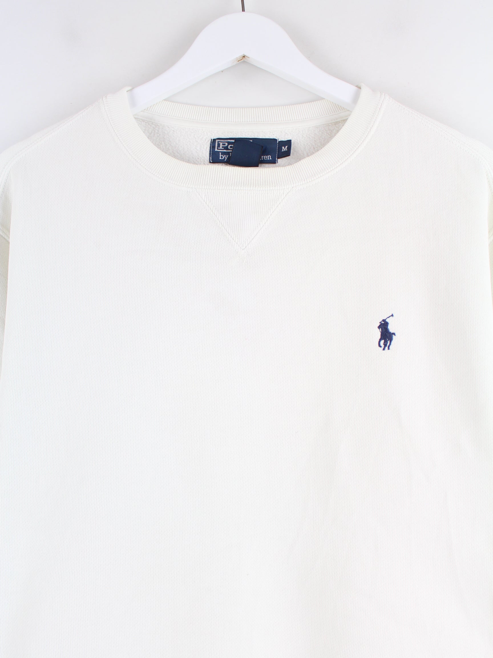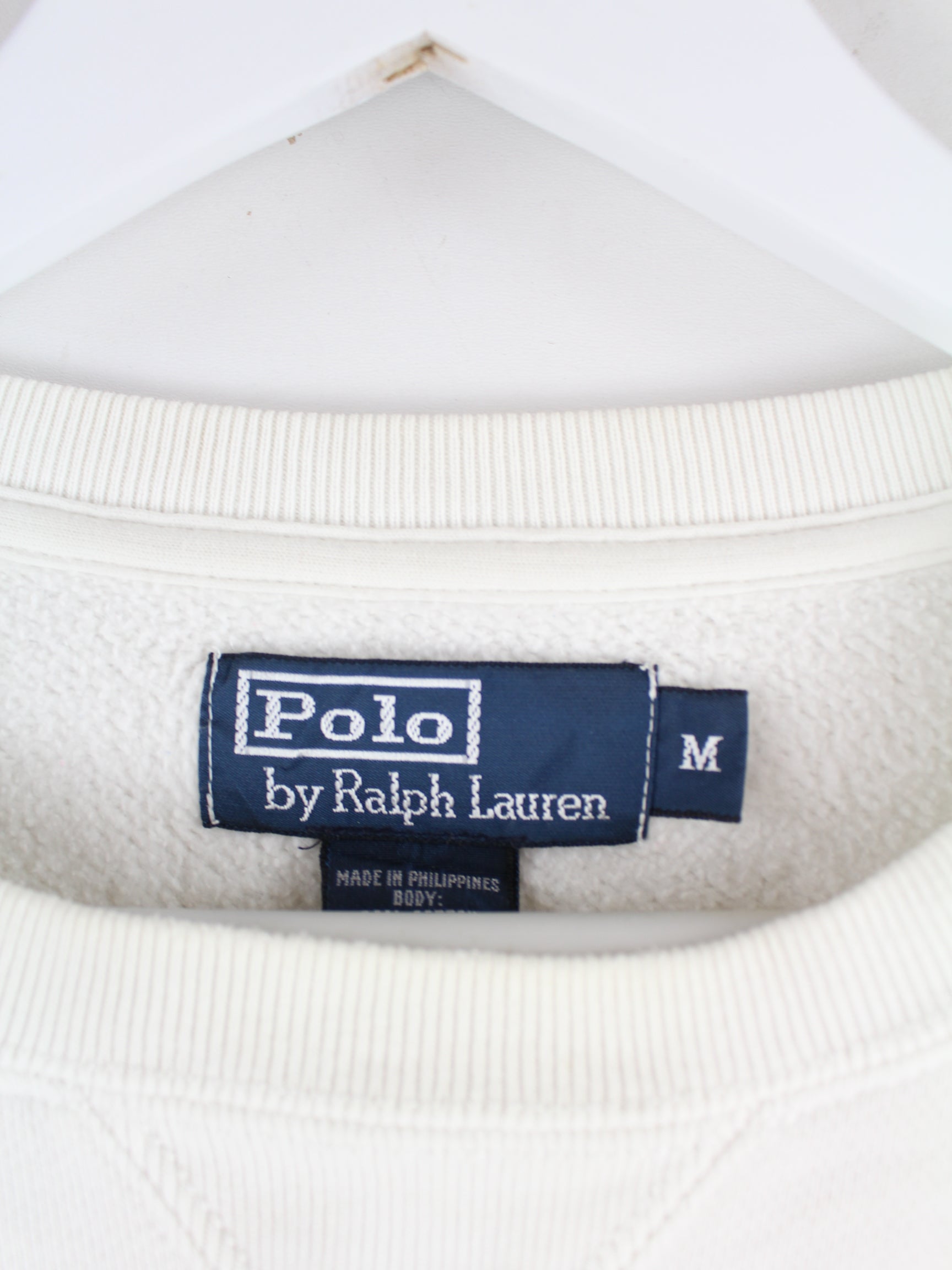 Sweater von Ralph Lauren in Größe M aus den 90'ern. Er ist aus einer Baumwollmischung produziert und in Weiß im Bestand.