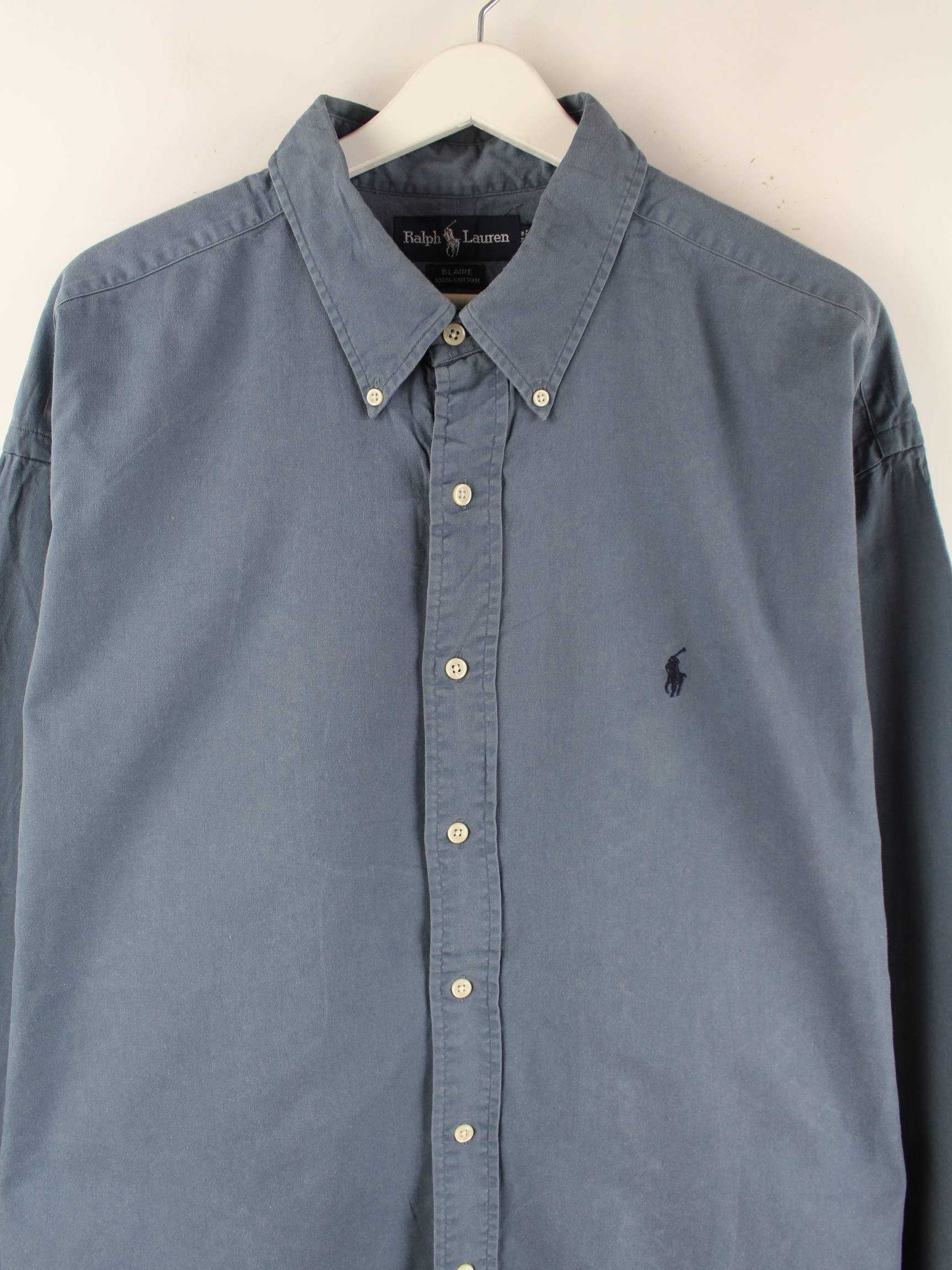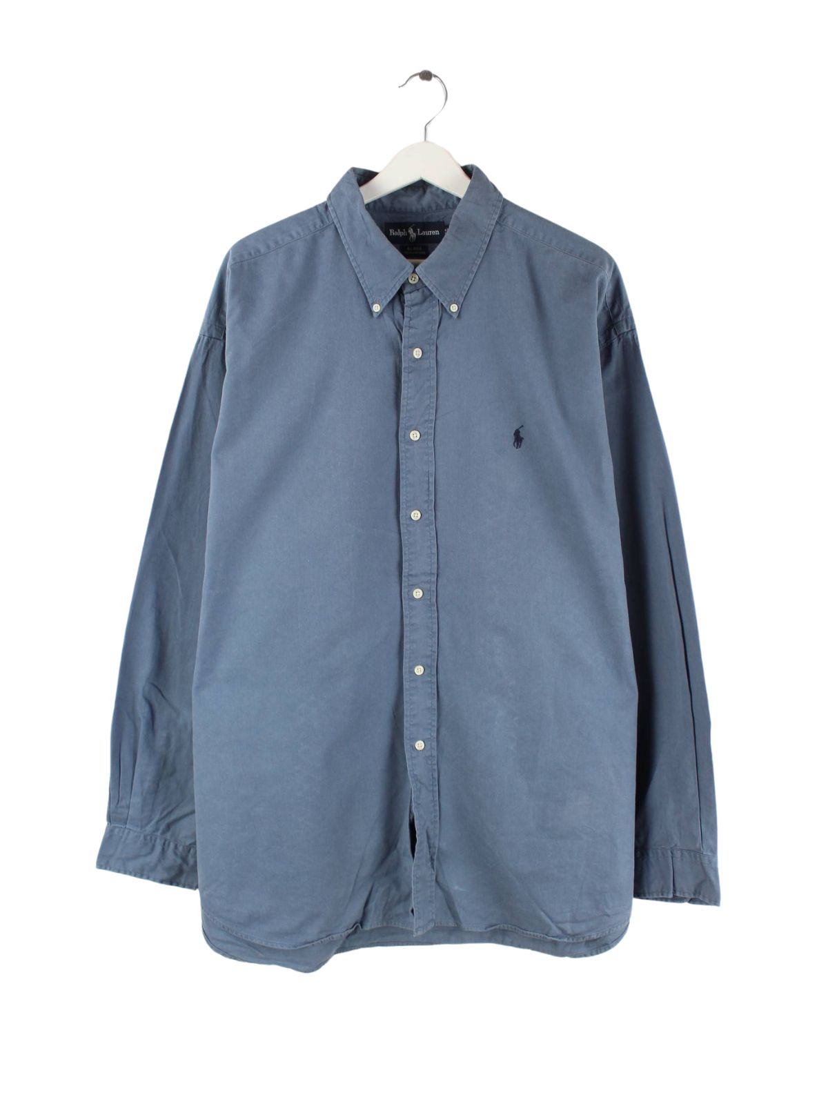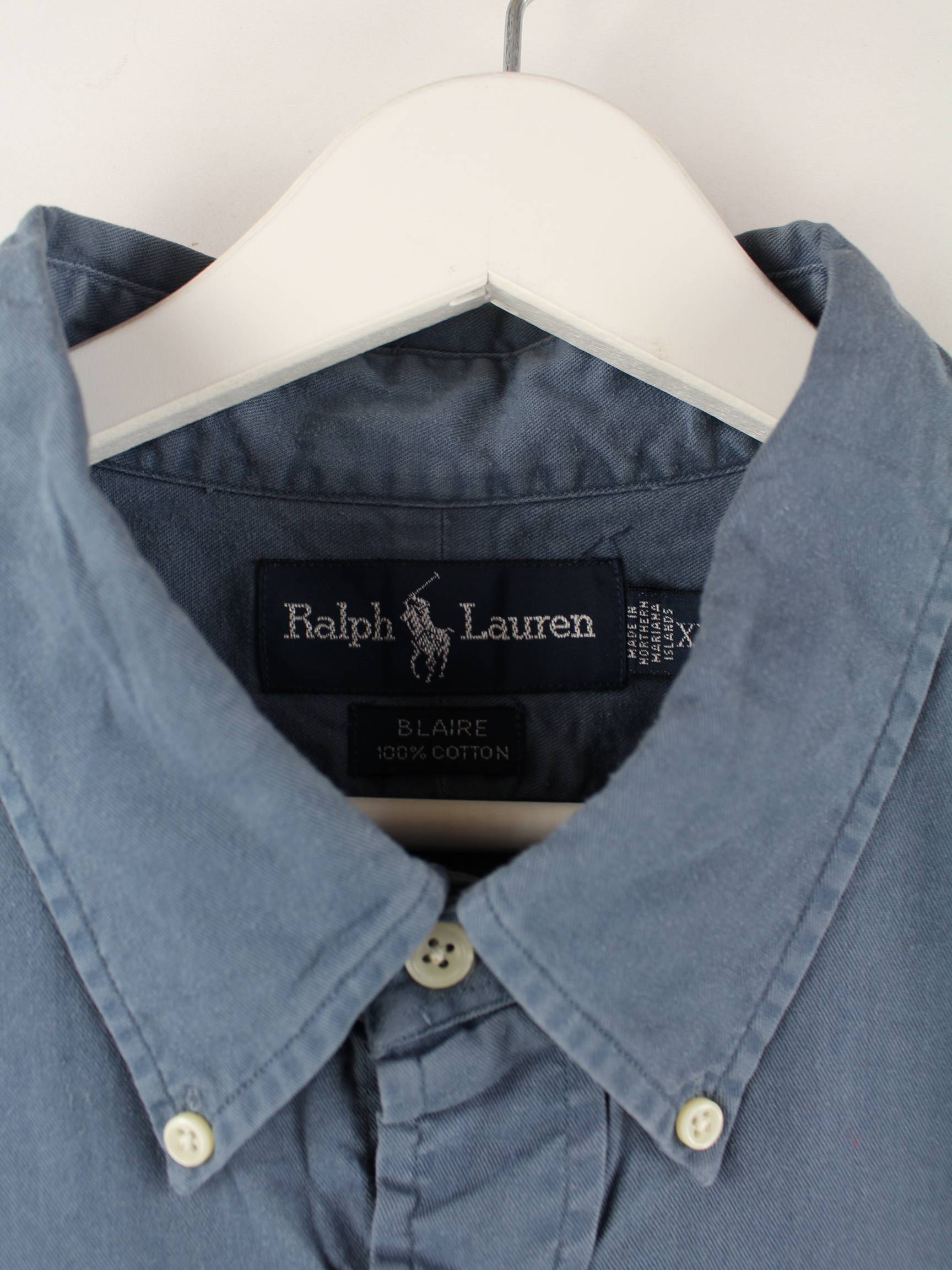 Blaues Hemd aus dem Hause Ralph Lauren aus den 90'ern in Größe XXL. Es ist aus Baumwolle gemacht und in sehr gutem Zustand im Angebot.