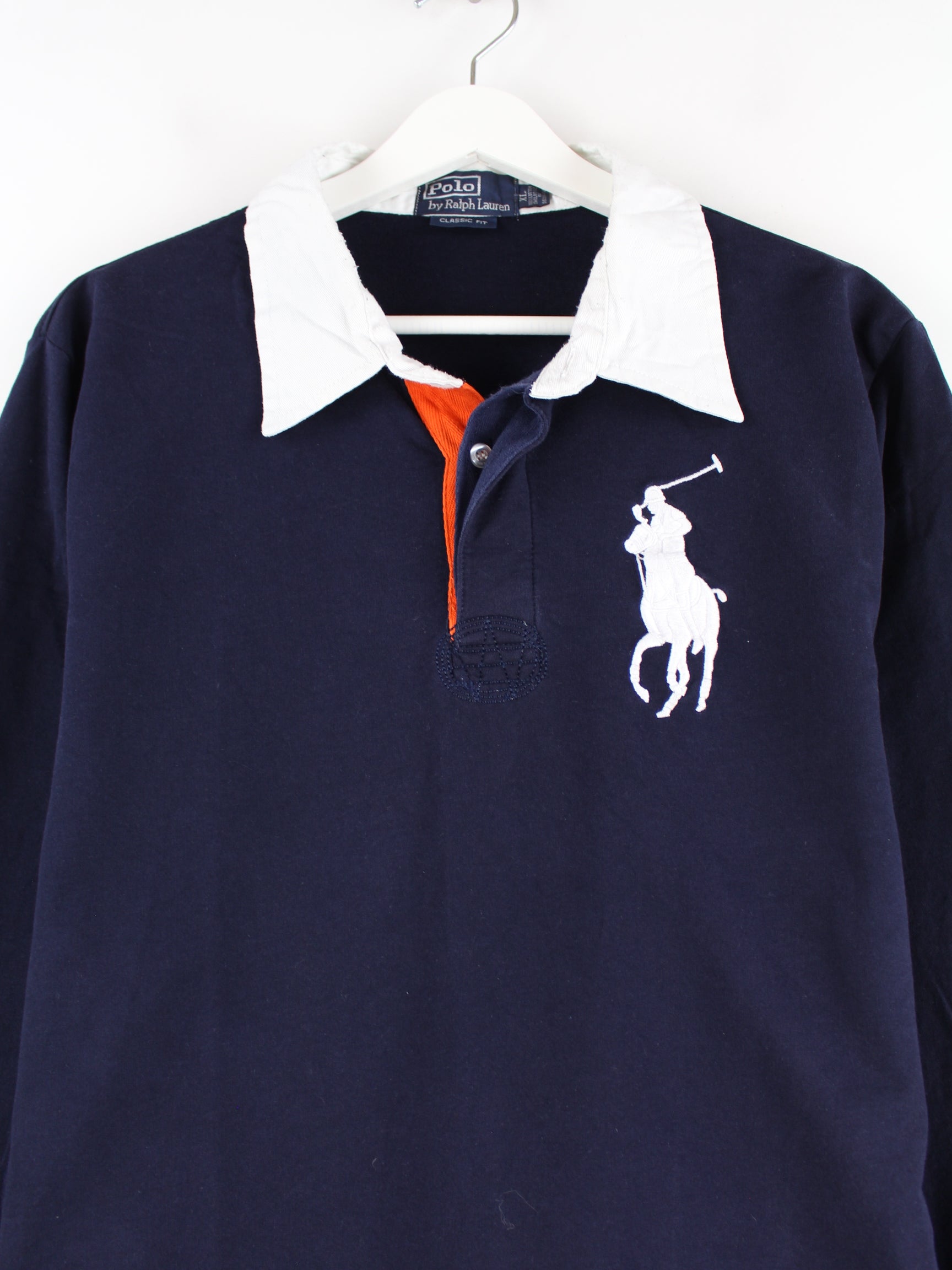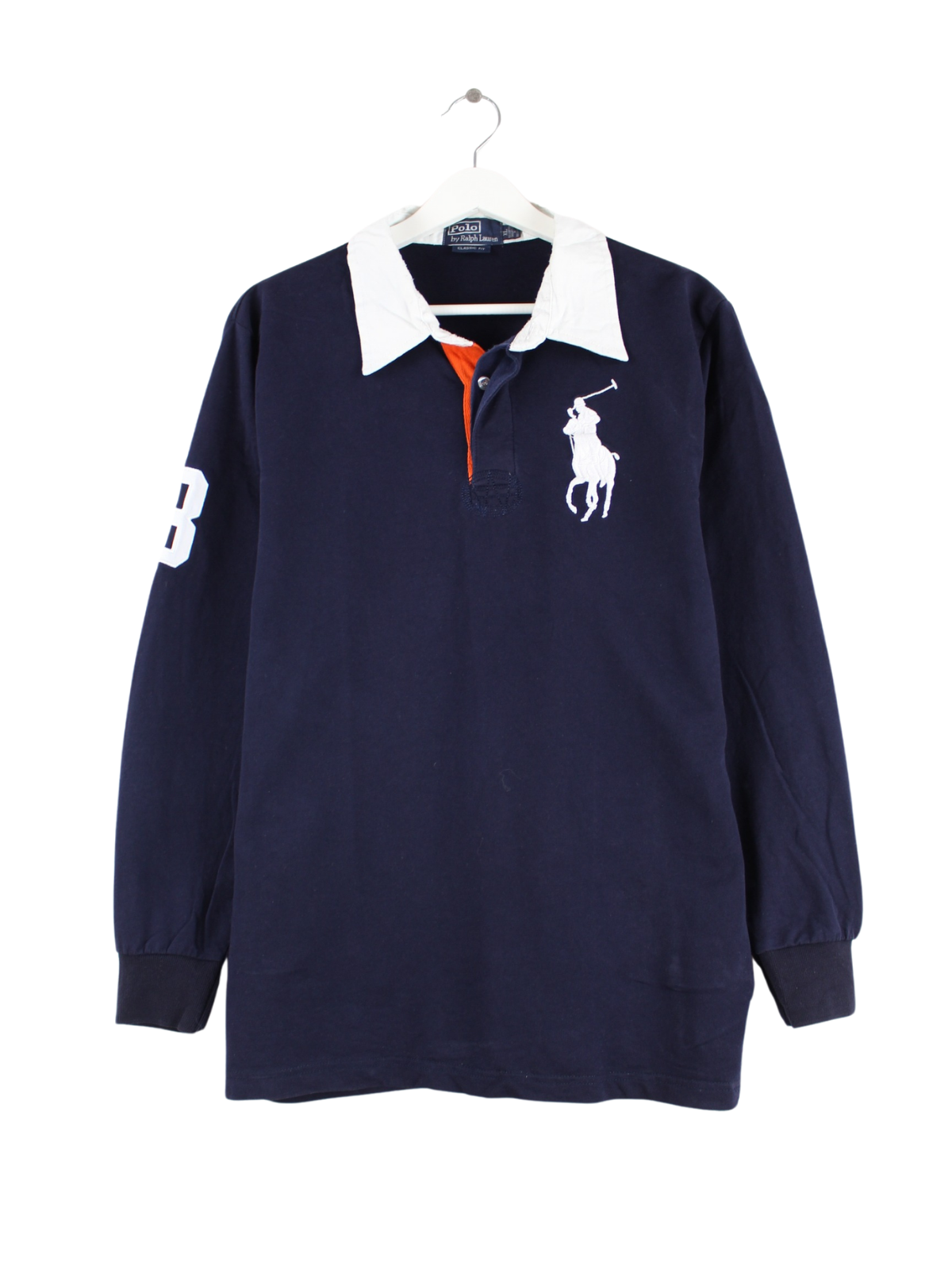 Ralph Lauren 90s Vintage Embroidered Langarm Polo Blau M