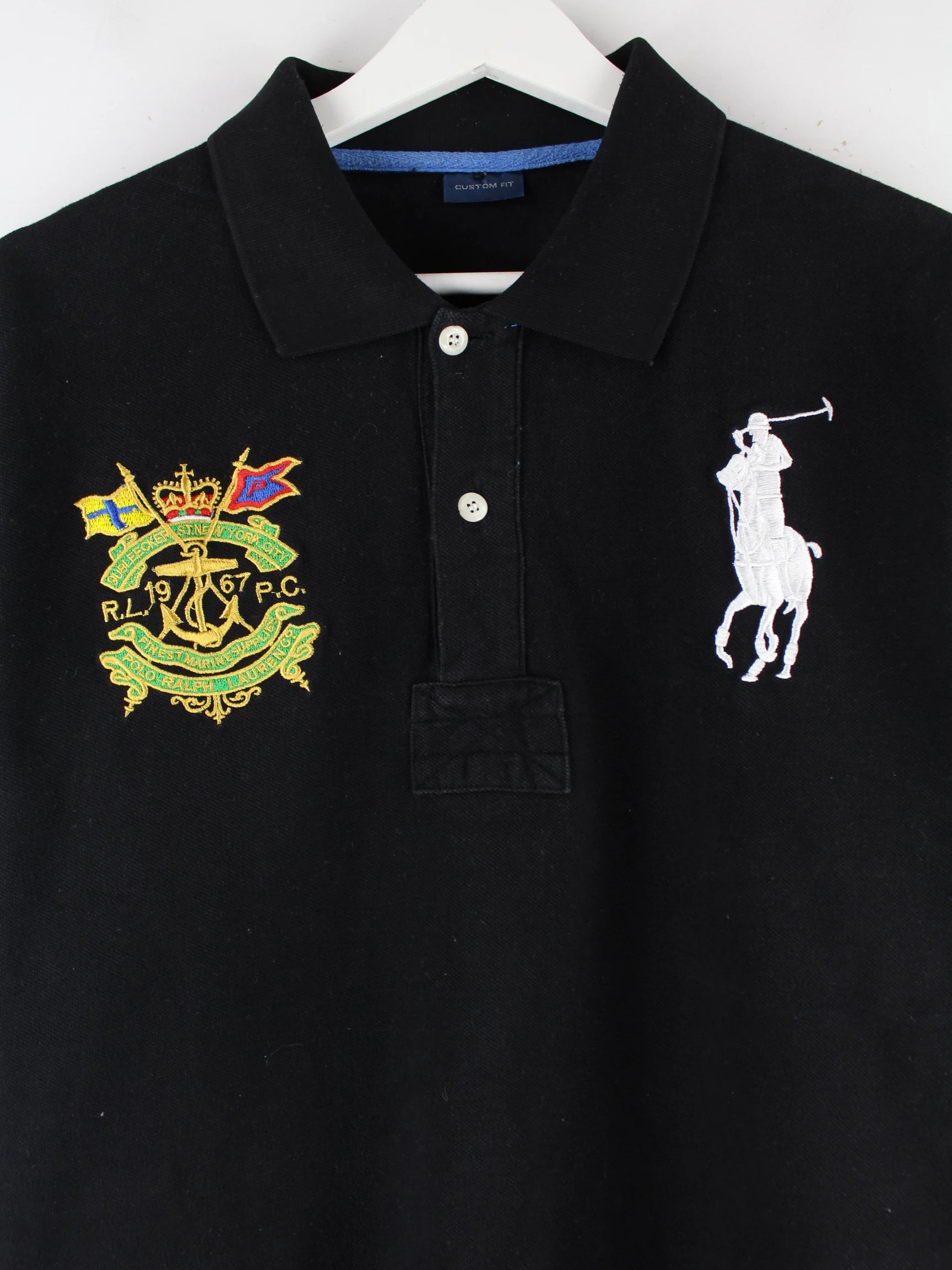 Ralph Lauren 90s Vintage Embroidered Polo Schwarz L