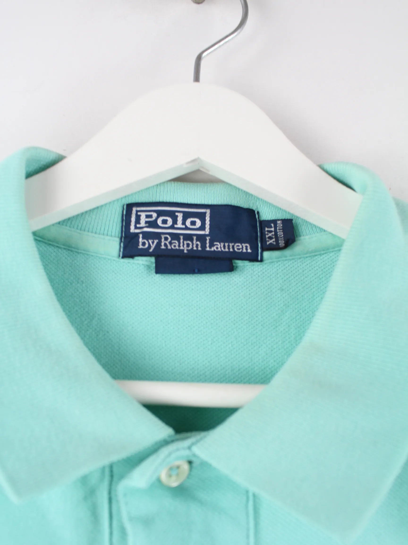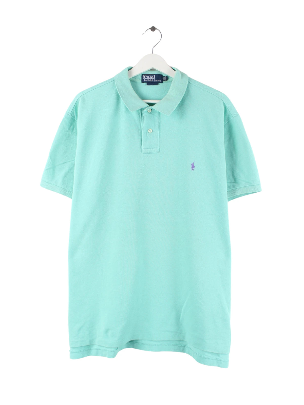 Poloshirt der Marke Ralph Lauren in Größe XXL aus den 90'ern. Es ist aus Baumwolle angefertigt und in Blau in Stock.