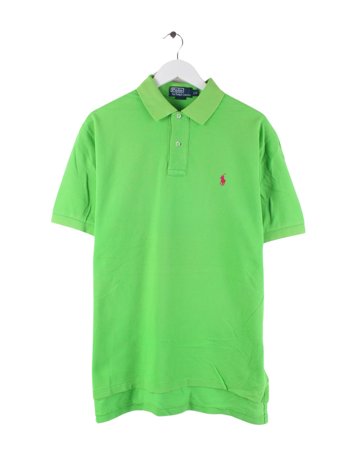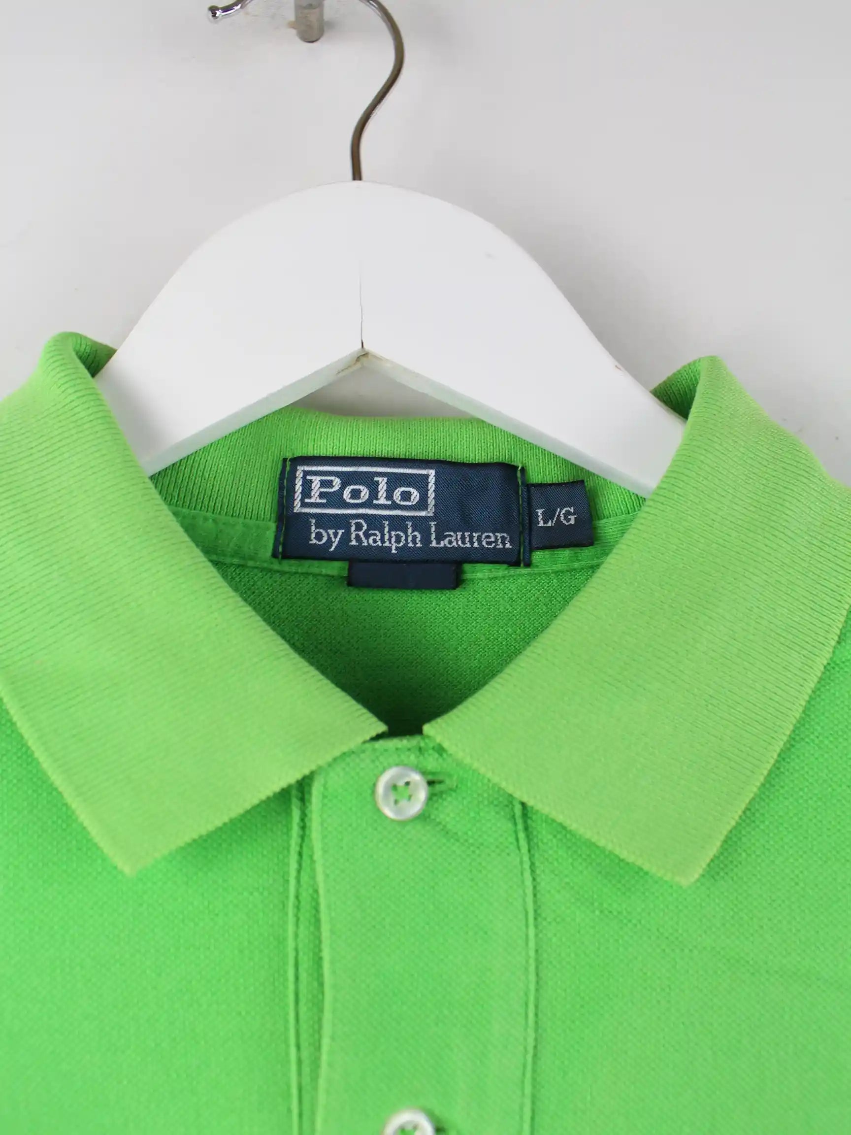 Grünes Poloshirt der Brand Ralph Lauren aus den 90'ern in Größe L. Es ist aus Baumwolle hergestellt und in sehr gutem Zustand im Angebot.