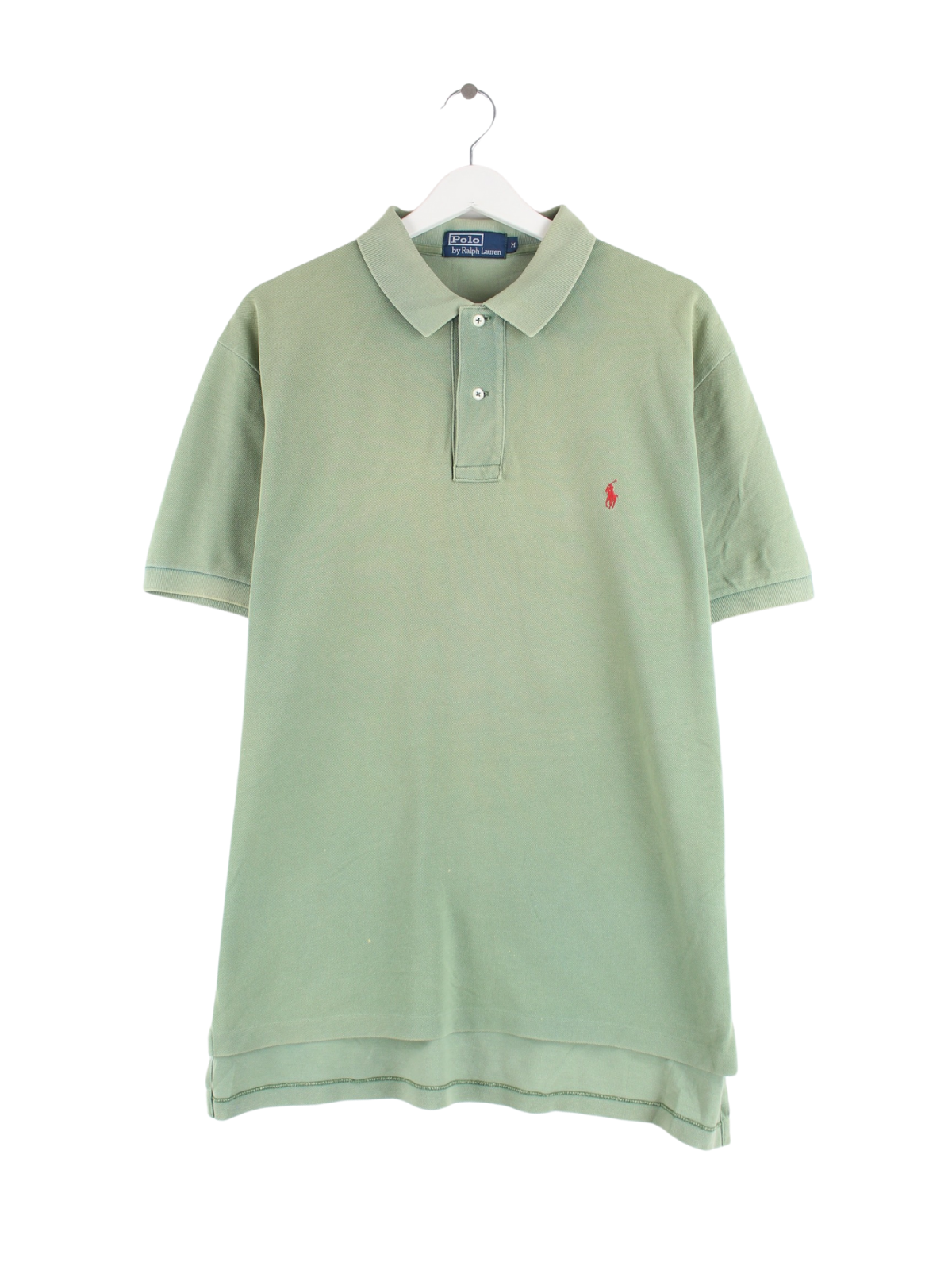 Grünes Poloshirt aus dem Hause Ralph Lauren aus den 90'ern in Größe M. Es ist aus Baumwolle gefertigt. Den Zustand würden wir als 'In Ordnung' bezeichnen (vergl. Bilder).