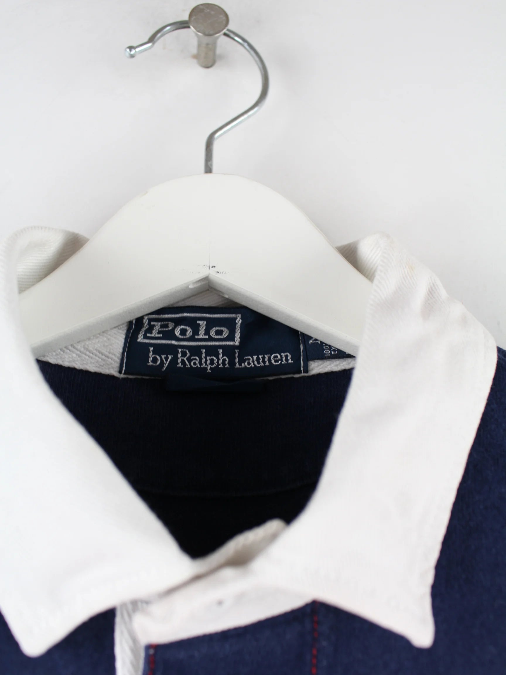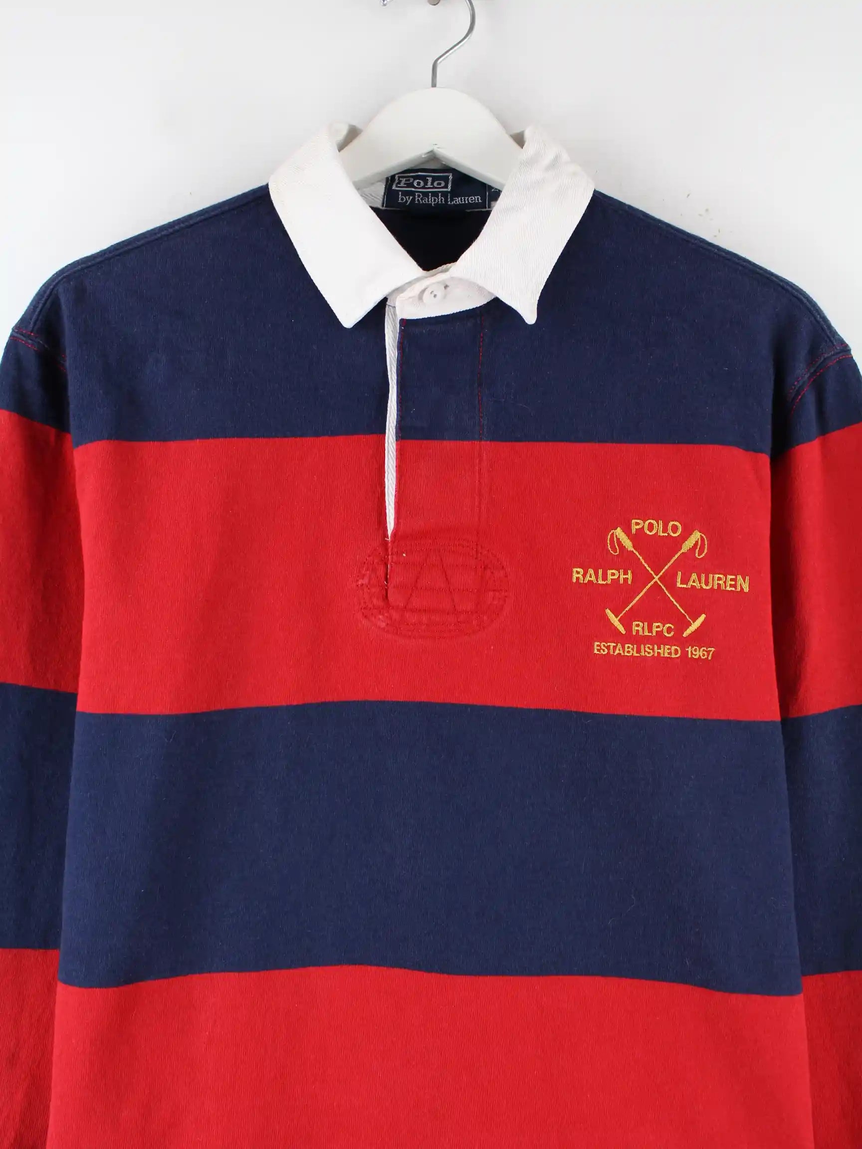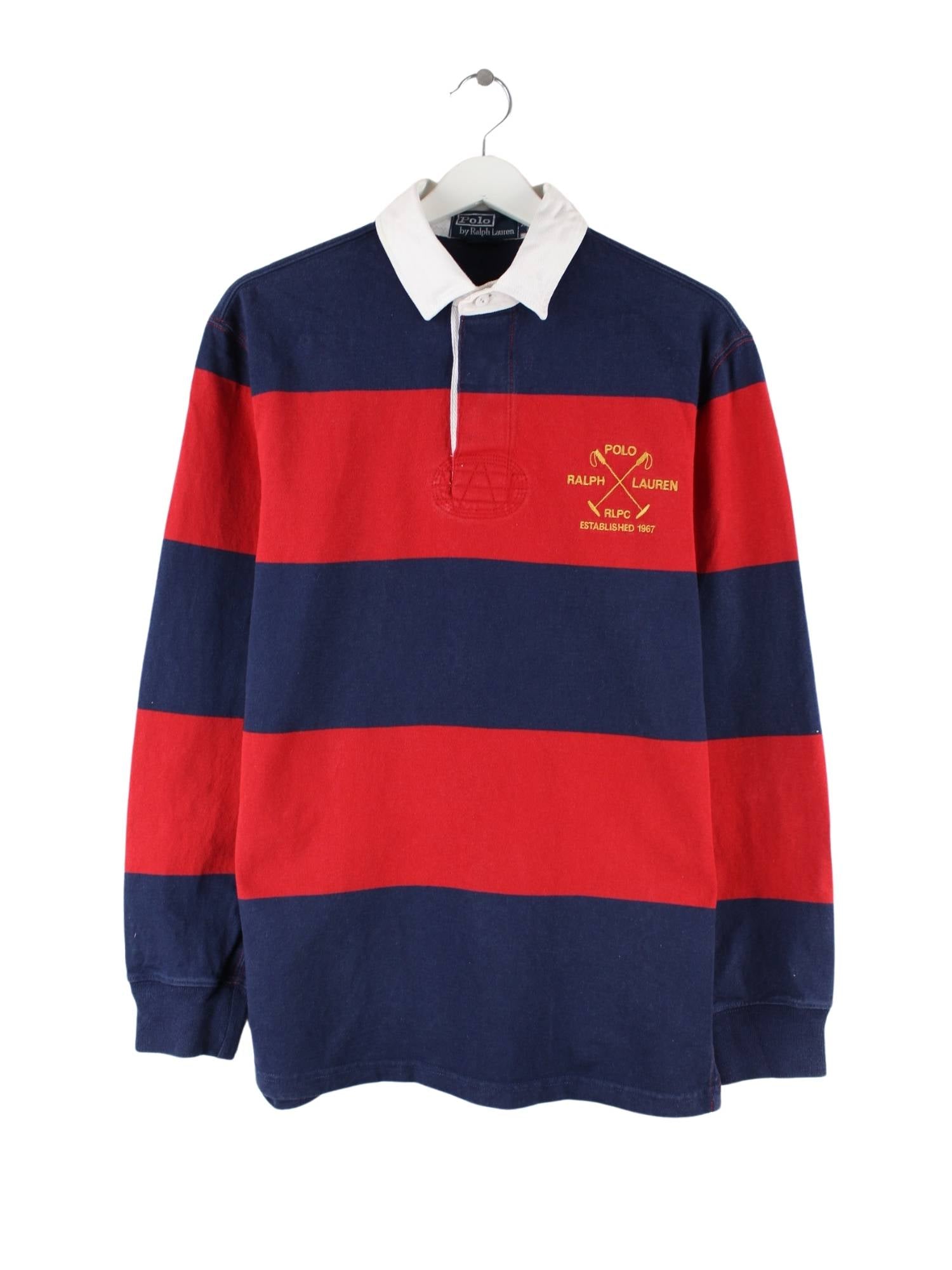 Ralph Lauren 90s Vintage Srtriped Rugby Langarm Polo Blau/Rot M