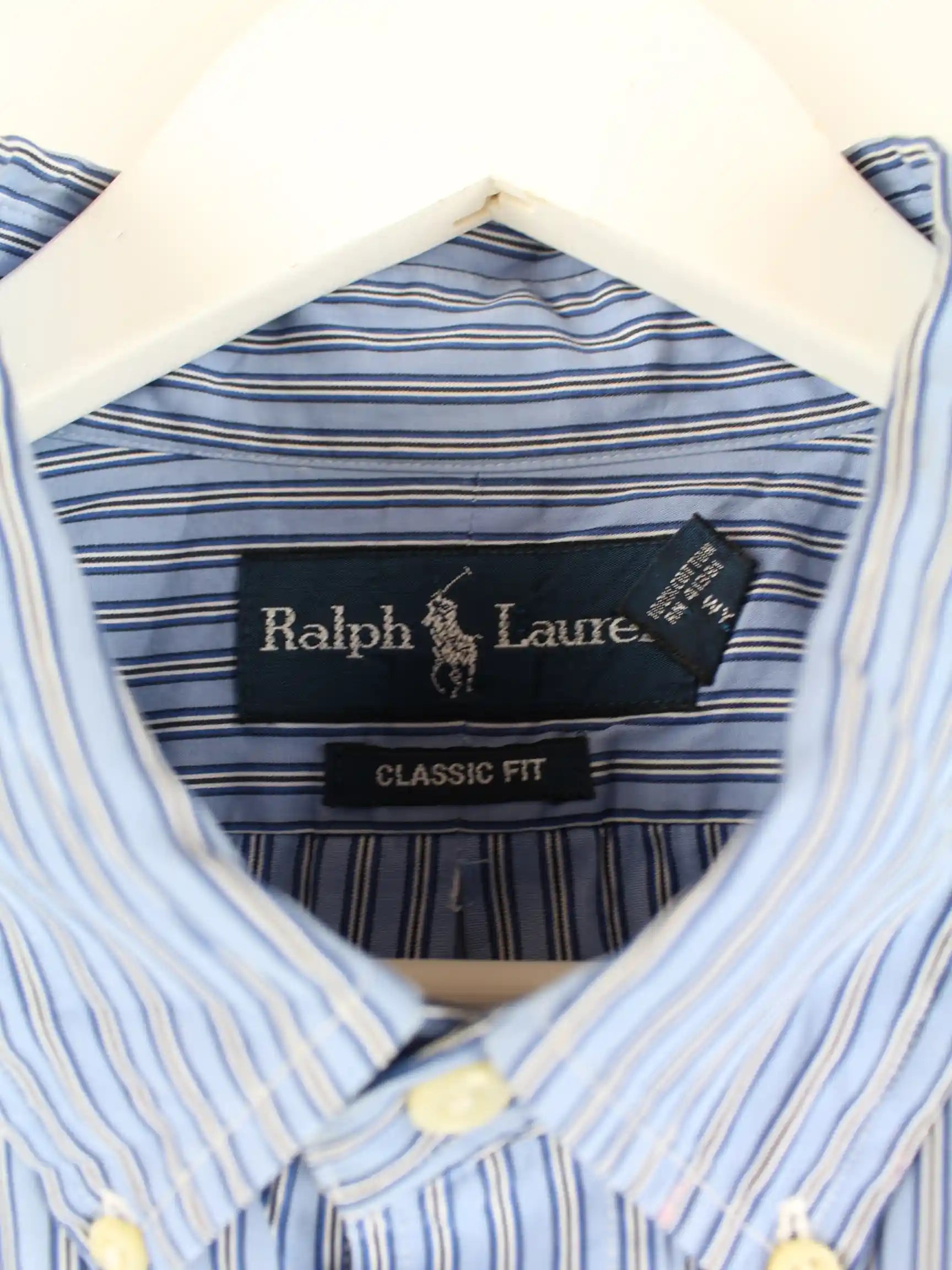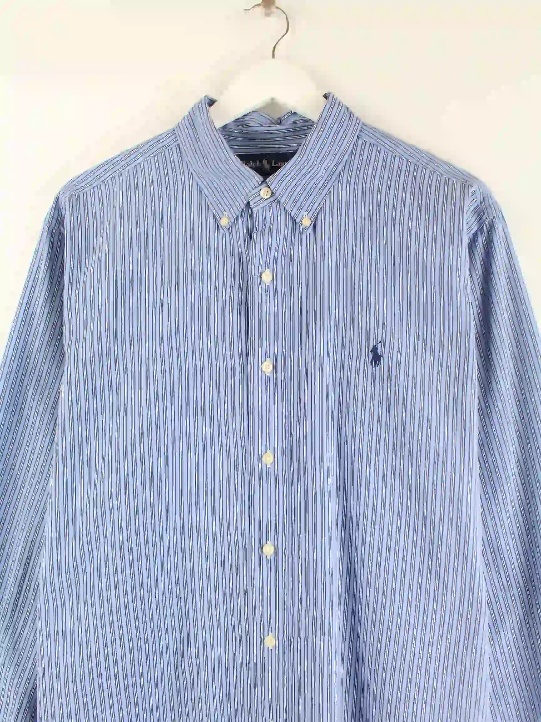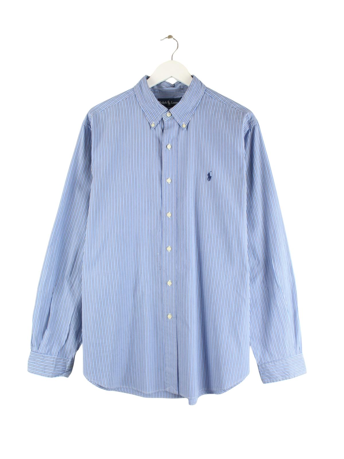 Gestreiftes Vintage Classic Fit Hemd von Polo Ralph Lauren in Größe XL aus den 90ern. Es ist aus Baumwolle produziert und in Blau im Bestand.