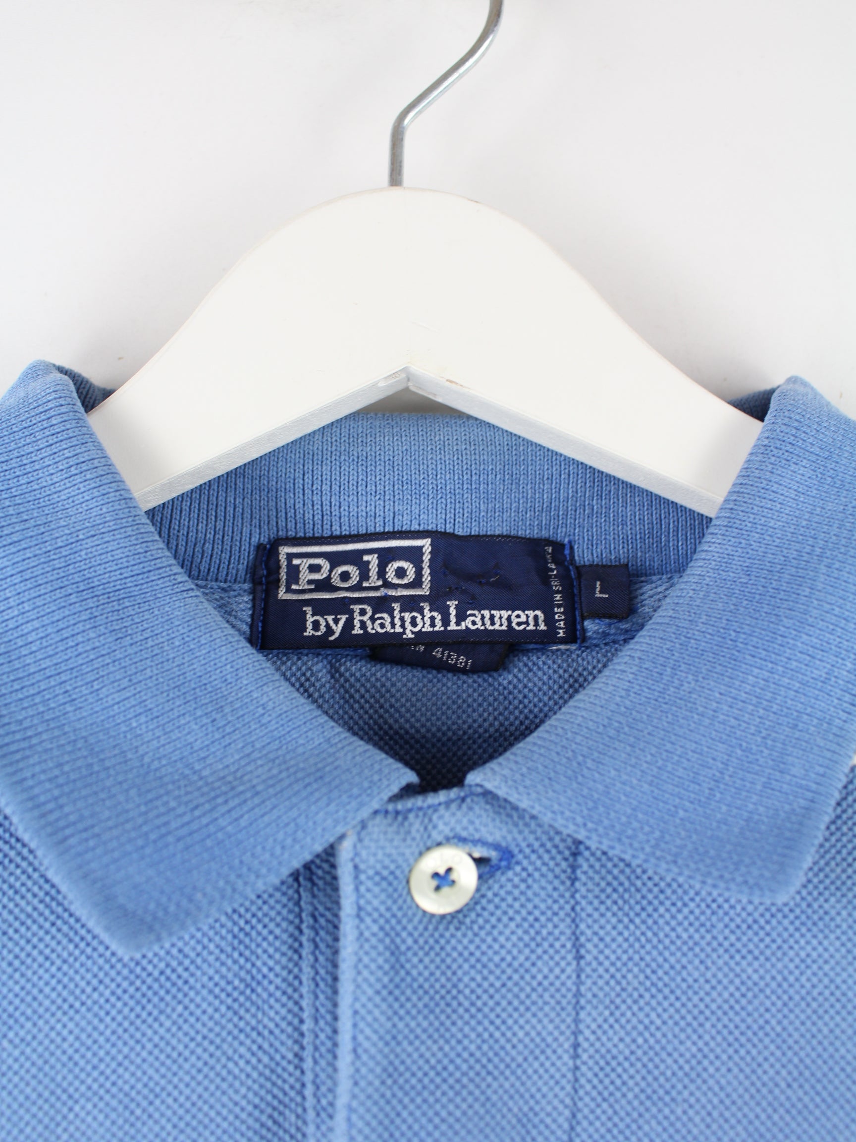 Blaues Poloshirt der Marke Ralph Lauren aus den 90'ern in Größe L. Es ist aus Baumwolle angefertigt und in gutem Zustand im Bestand.