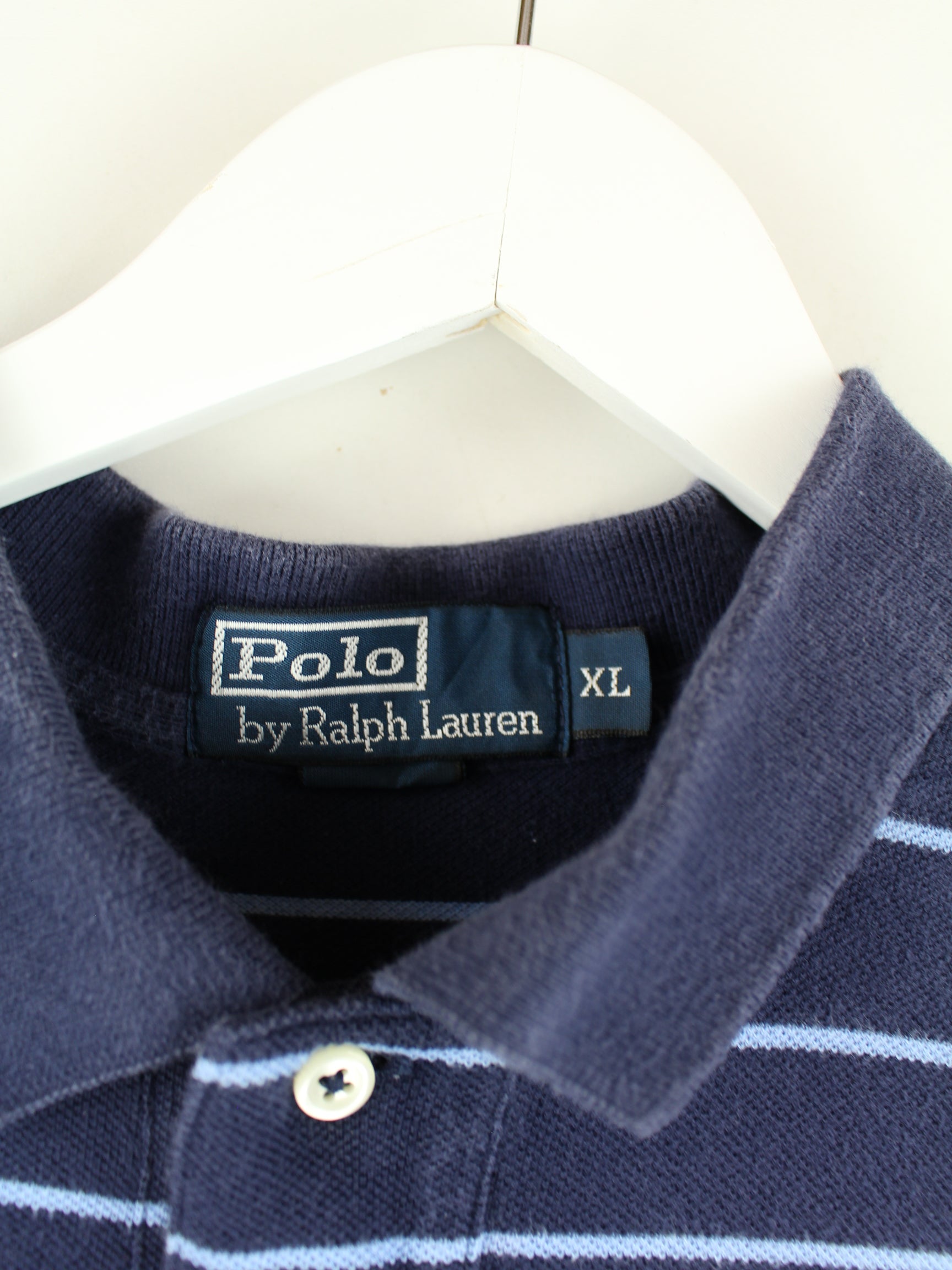 Ralph Lauren 90s Vintage Striped Polo Blau XXL