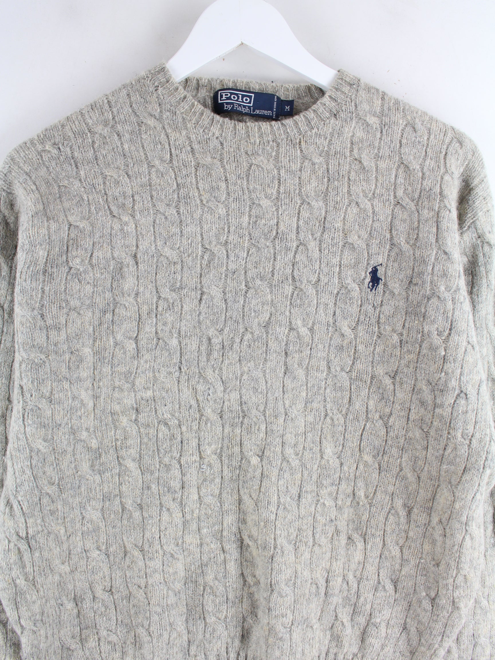 Pullover der Marke Ralph Lauren in Größe M aus den 90'ern. Er ist aus Wolle gemacht und in Grau im Bestand.