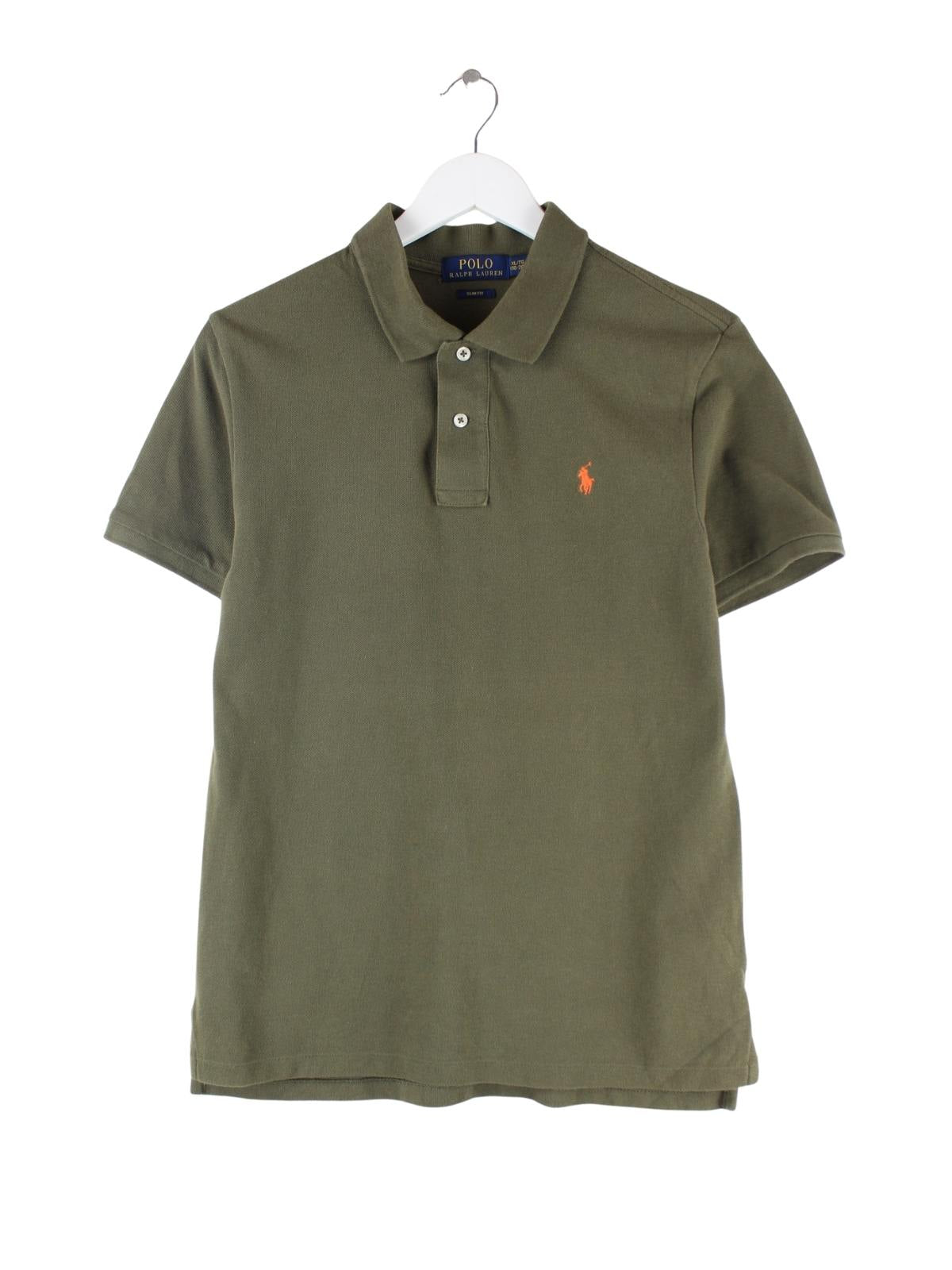 Grünes Poloshirt der Marke Ralph Lauren mit orangenem Logo. Es ist in Größe XL (18-20) und entspricht etwas einer Größe M.