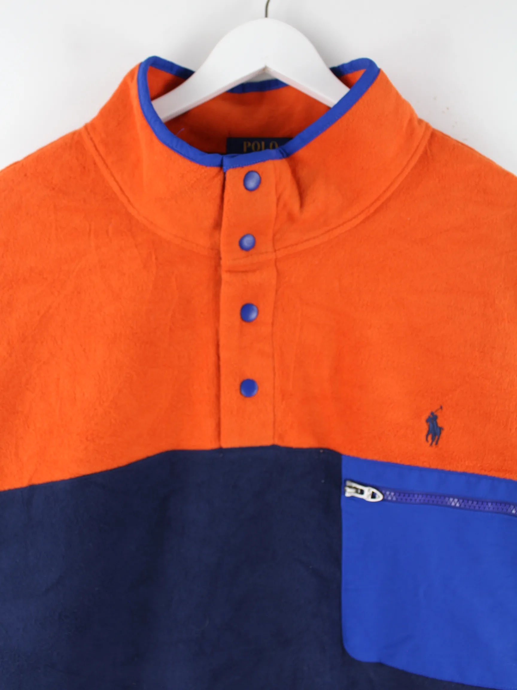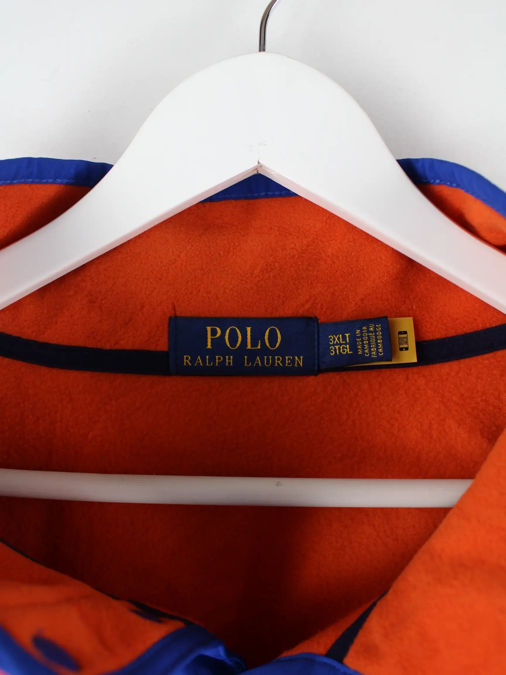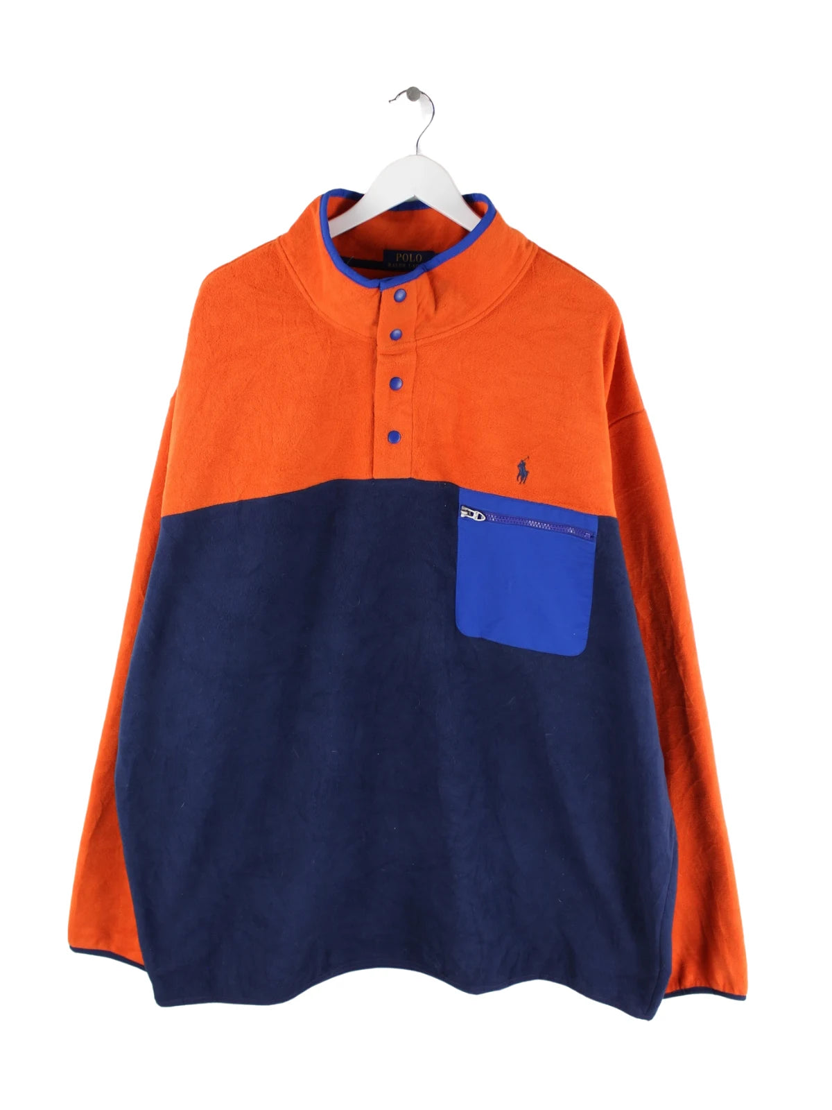 Orangefarbener Sweater der Brand Ralph Lauren in Größe 3XLT. Er ist aus kuscheligem Fleece hergestellt und in sehr gutem Zustand bei uns vorrätig.