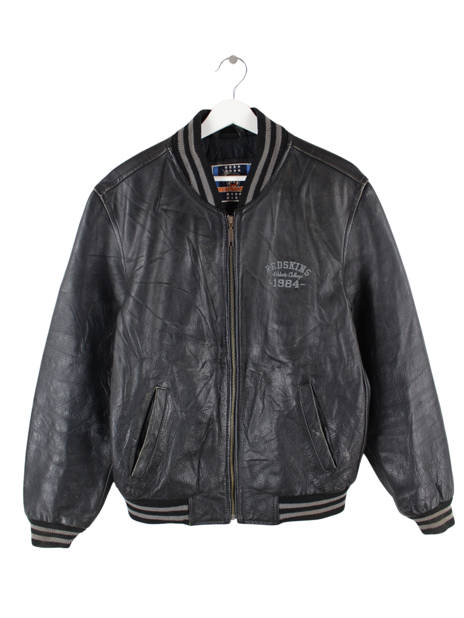 Redskins 90s Vintage College Leder Jacke Schwarz L