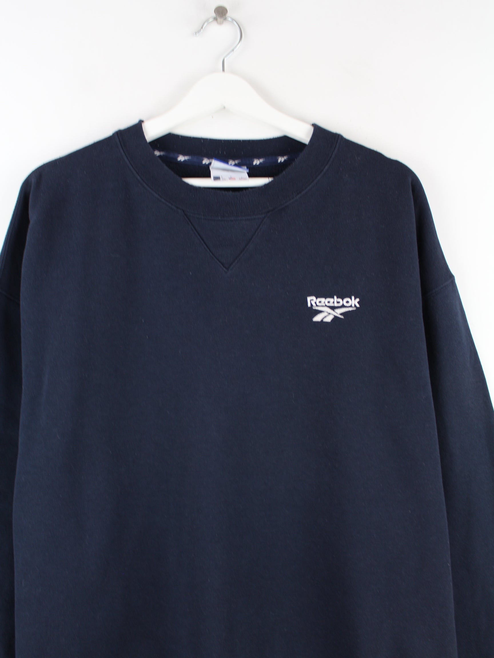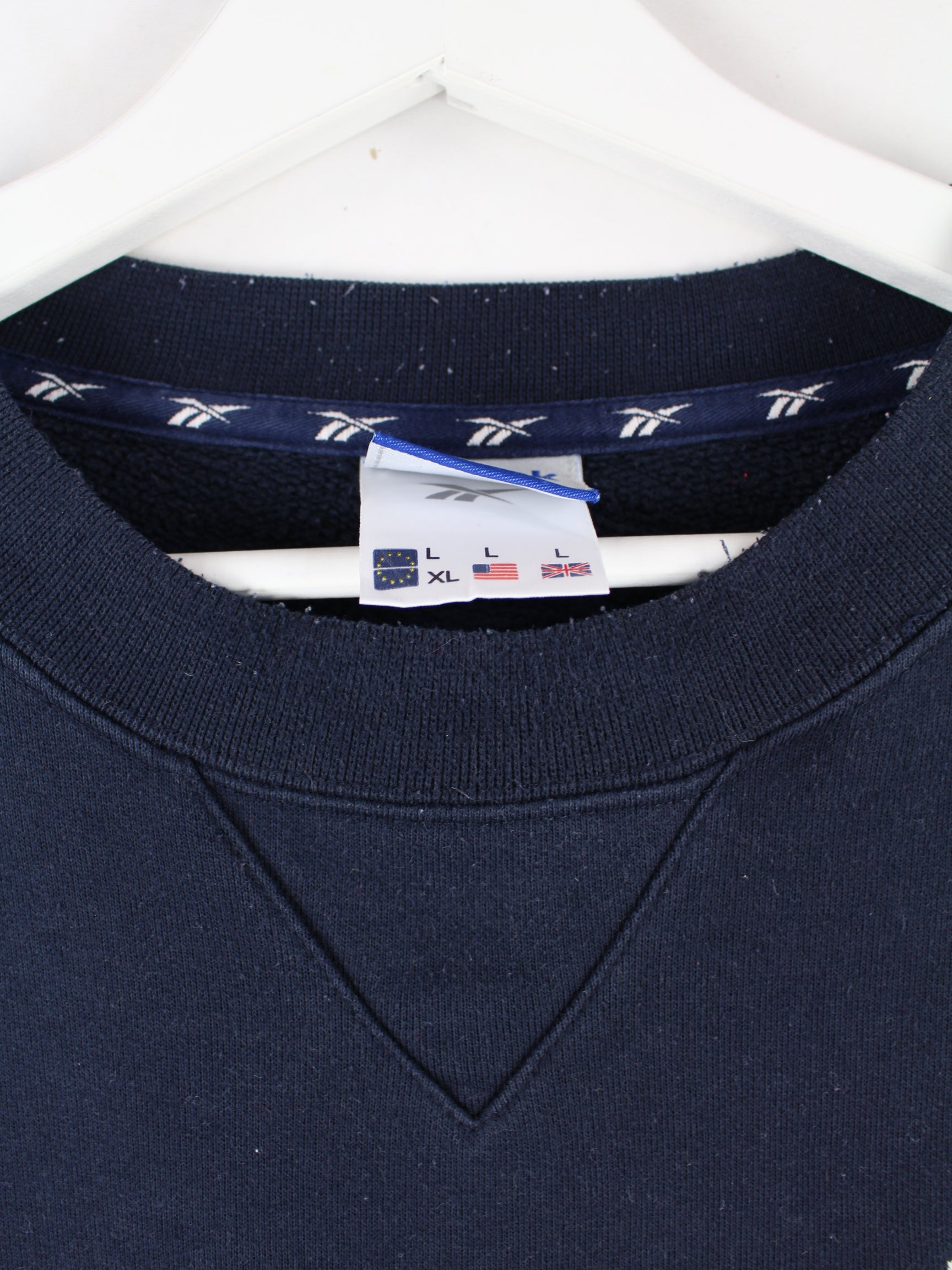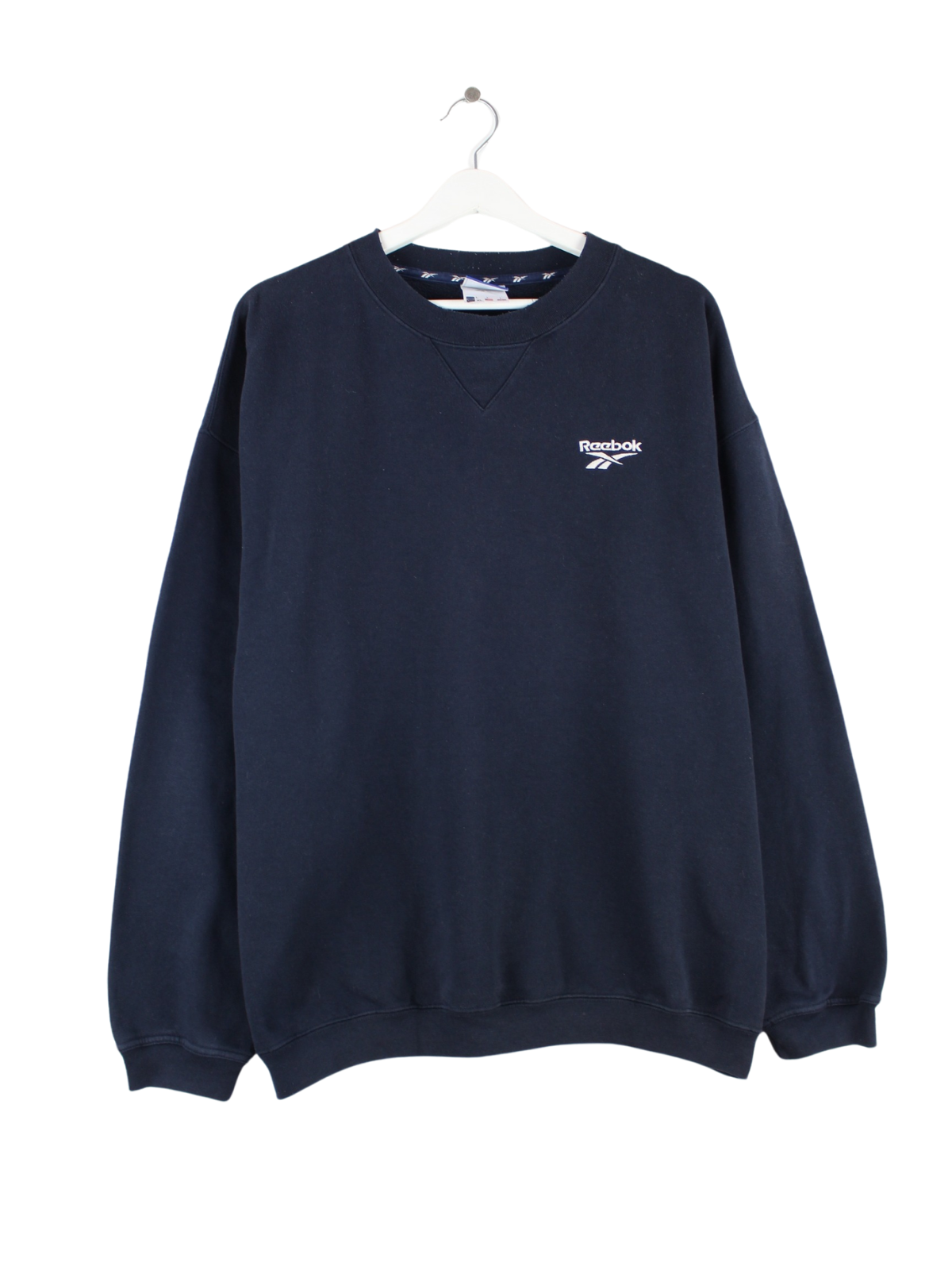 Sweater der Marke Reebok in Größe L. Er ist aus einer Baumwollmischung hergestellt und in Blau lieferbar.