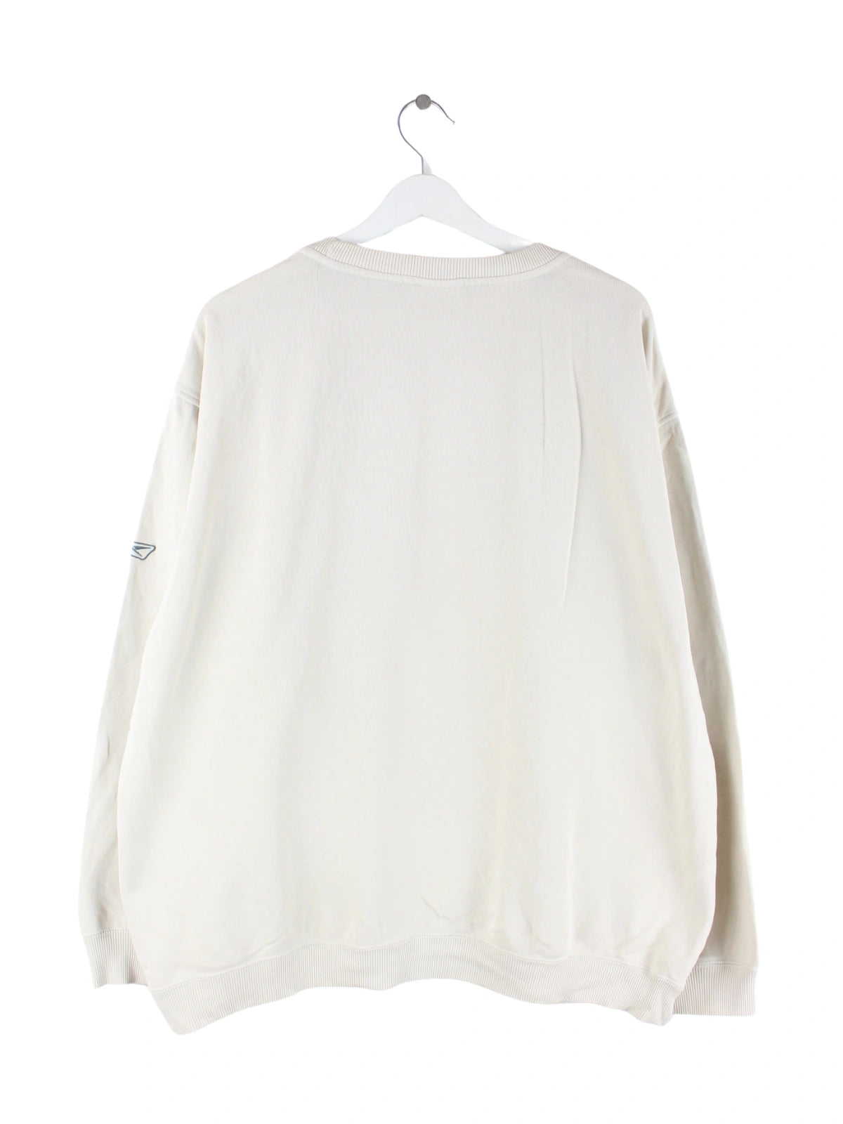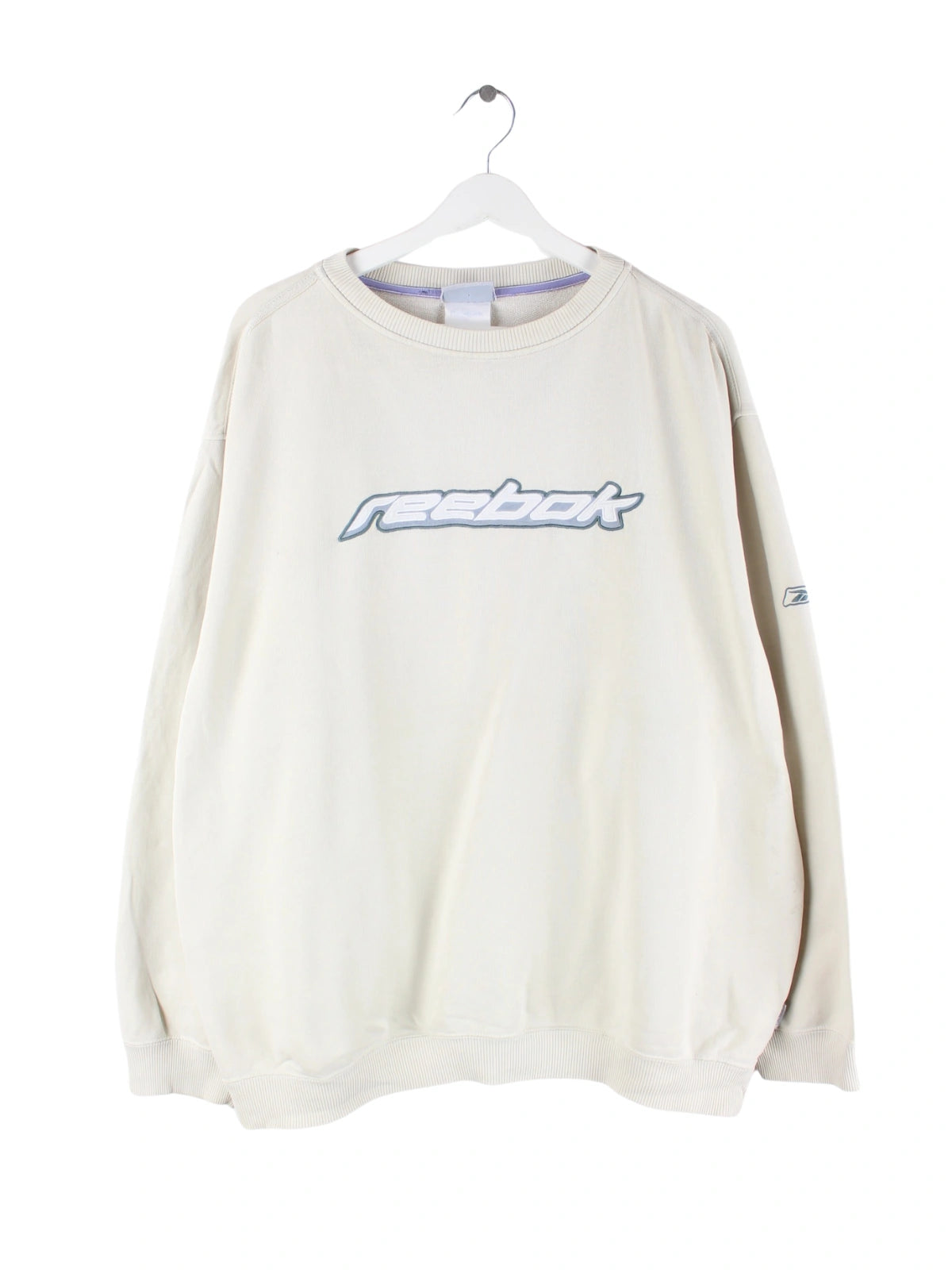 Sweater des Labels Reebok mit Stickereien in Größe XL. Er ist aus einer Baumwollmischung produziert und in Beige zu haben.