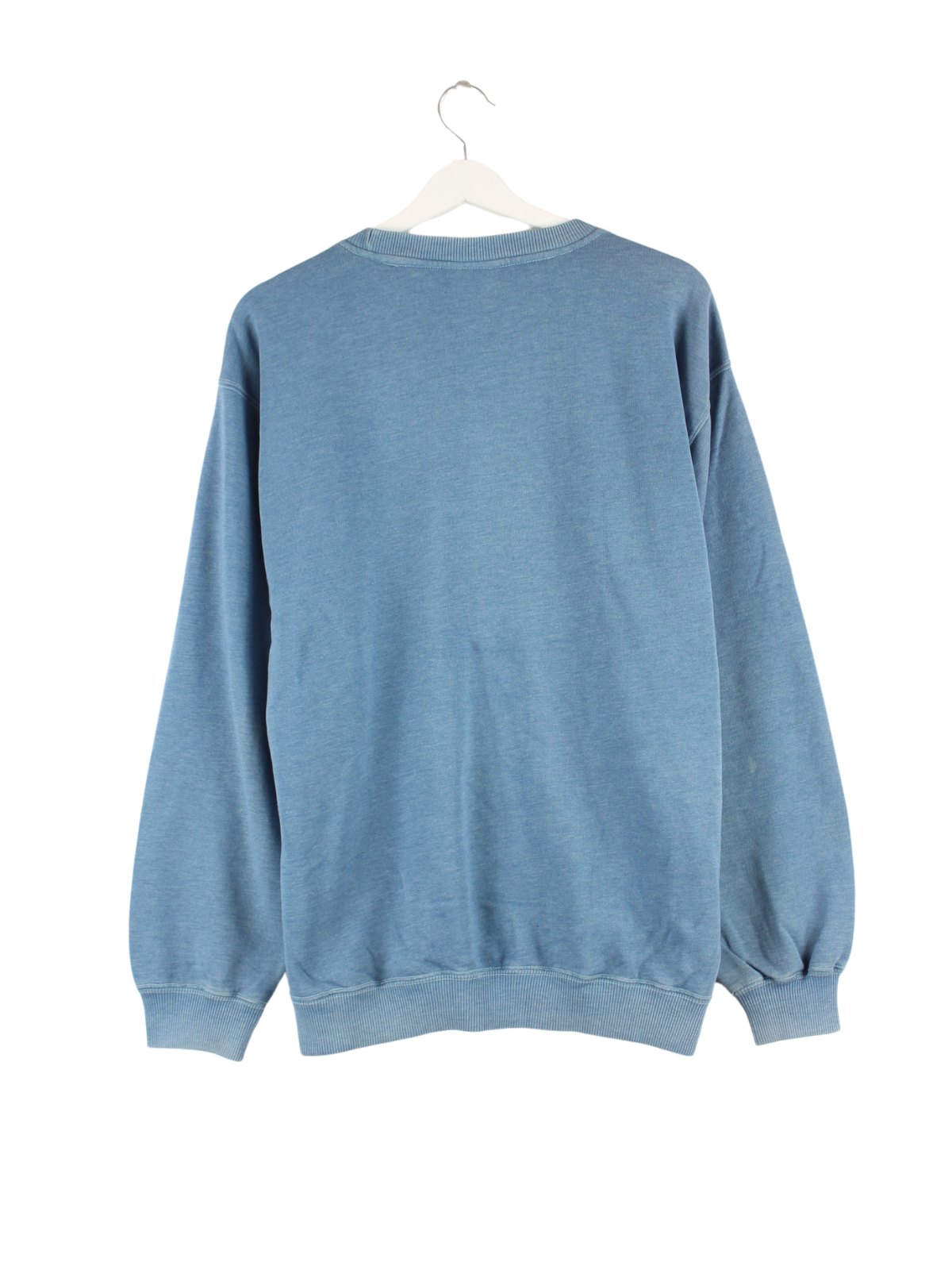 Blauer Sweater mit gestickten Motiven vom Brand Reebok in Größe L. Er ist aus einer Baumwollmischung hergestellt und in gutem Zustand zu haben.