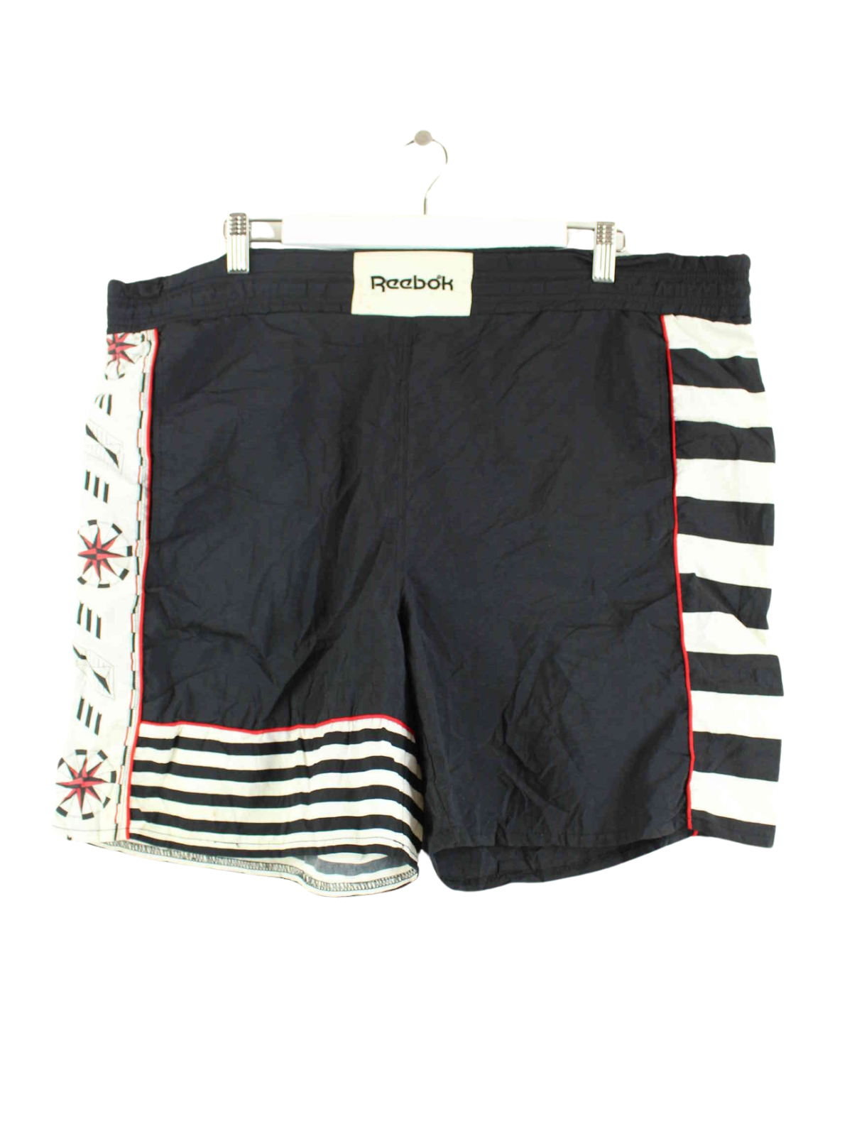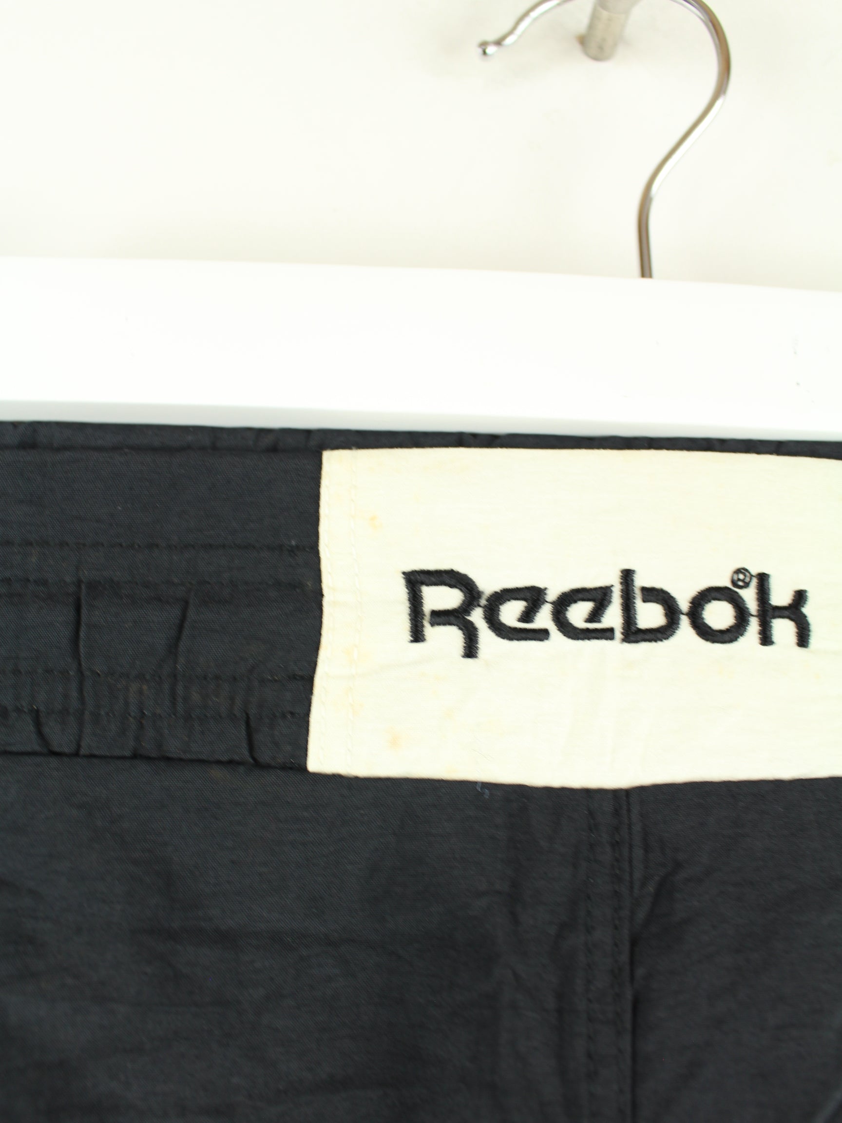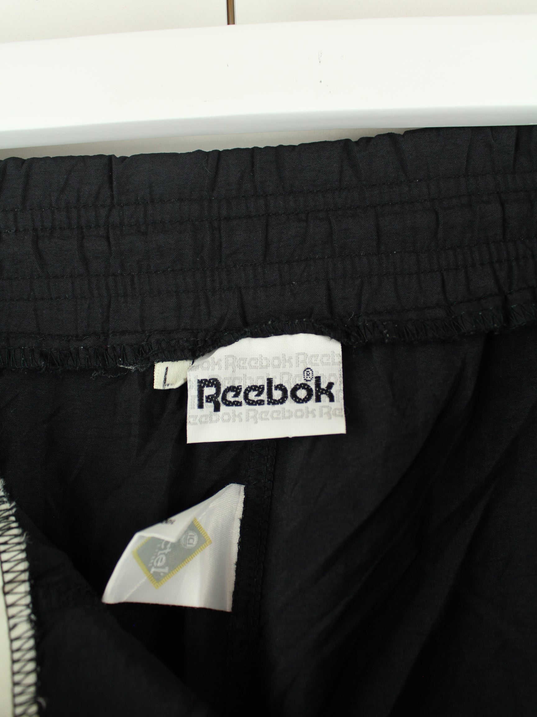 Schwarze Shorts von Reebok aus den 80'ern in Größe L. Sie sind aus Synthetik hergestellt und in gutem Zustand bei uns vorrätig.