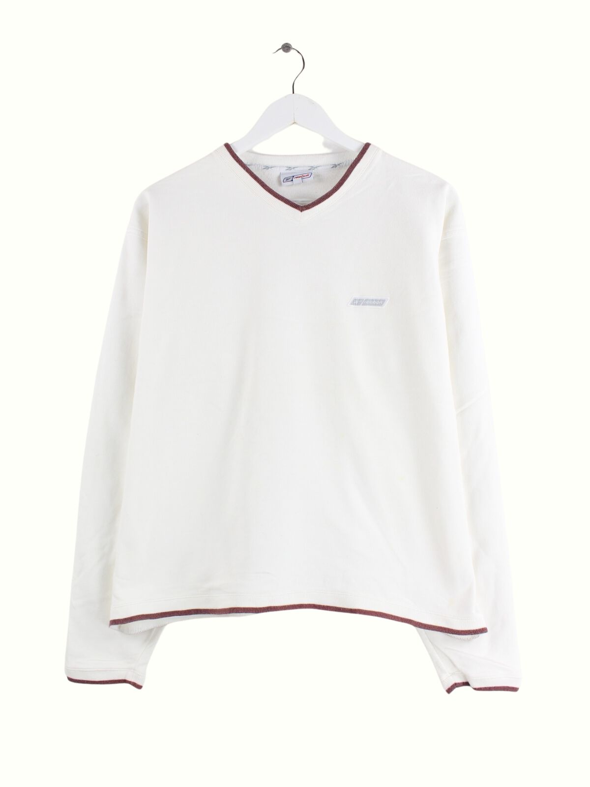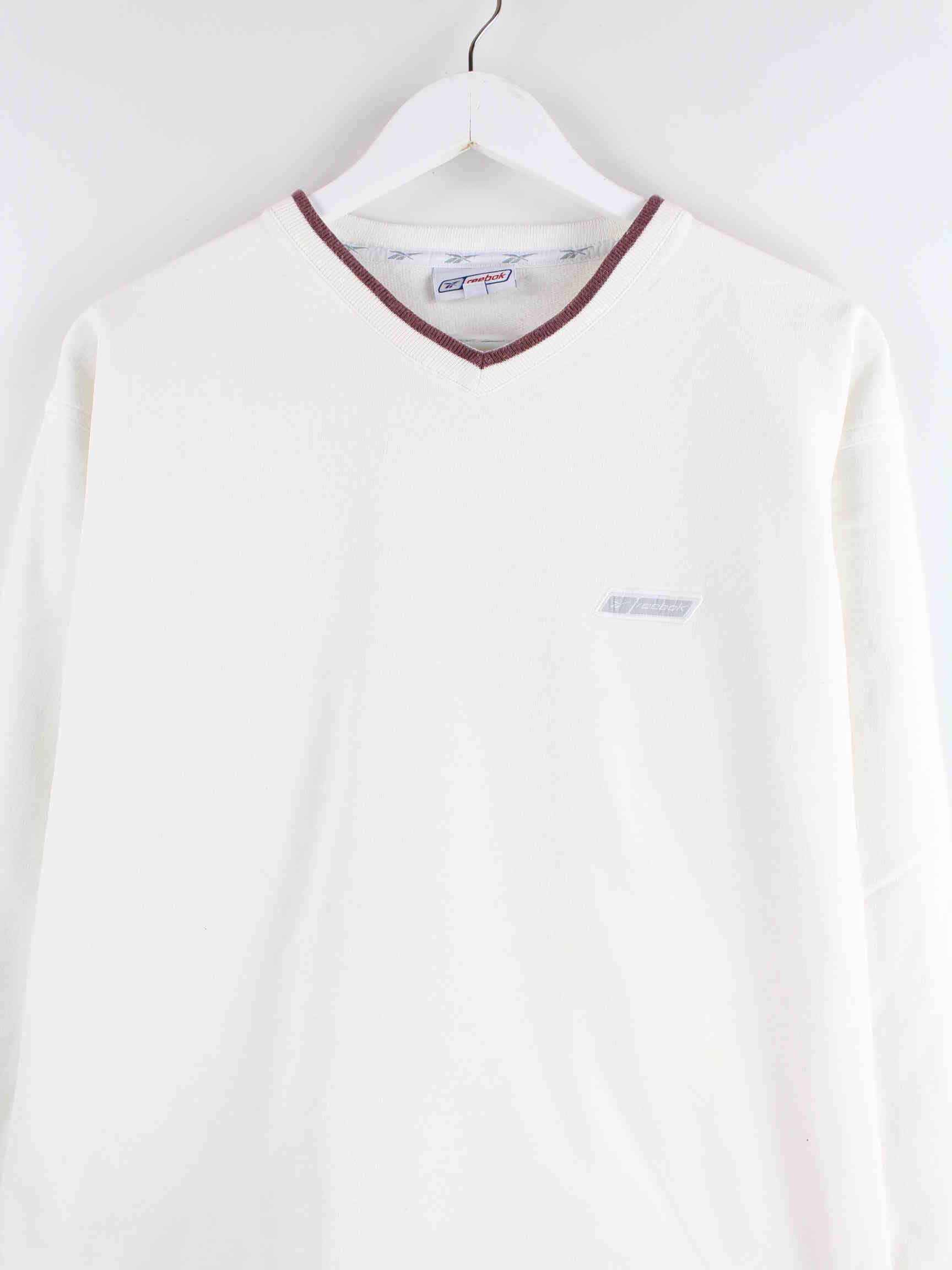 Sweater der Marke Reebok in Größe XL. Er ist aus einer Baumwollmischung hergestellt und in Weiß lieferbar.