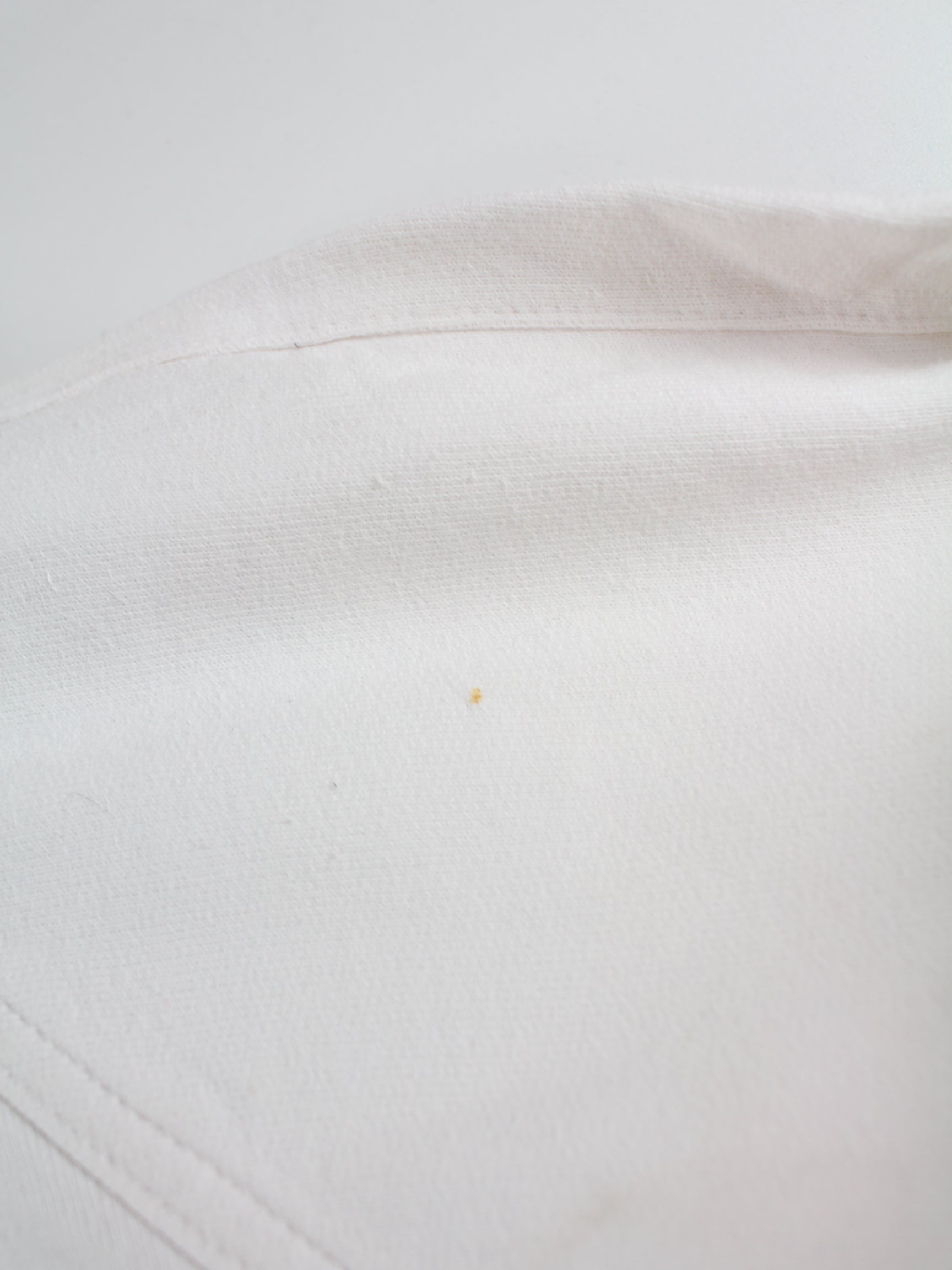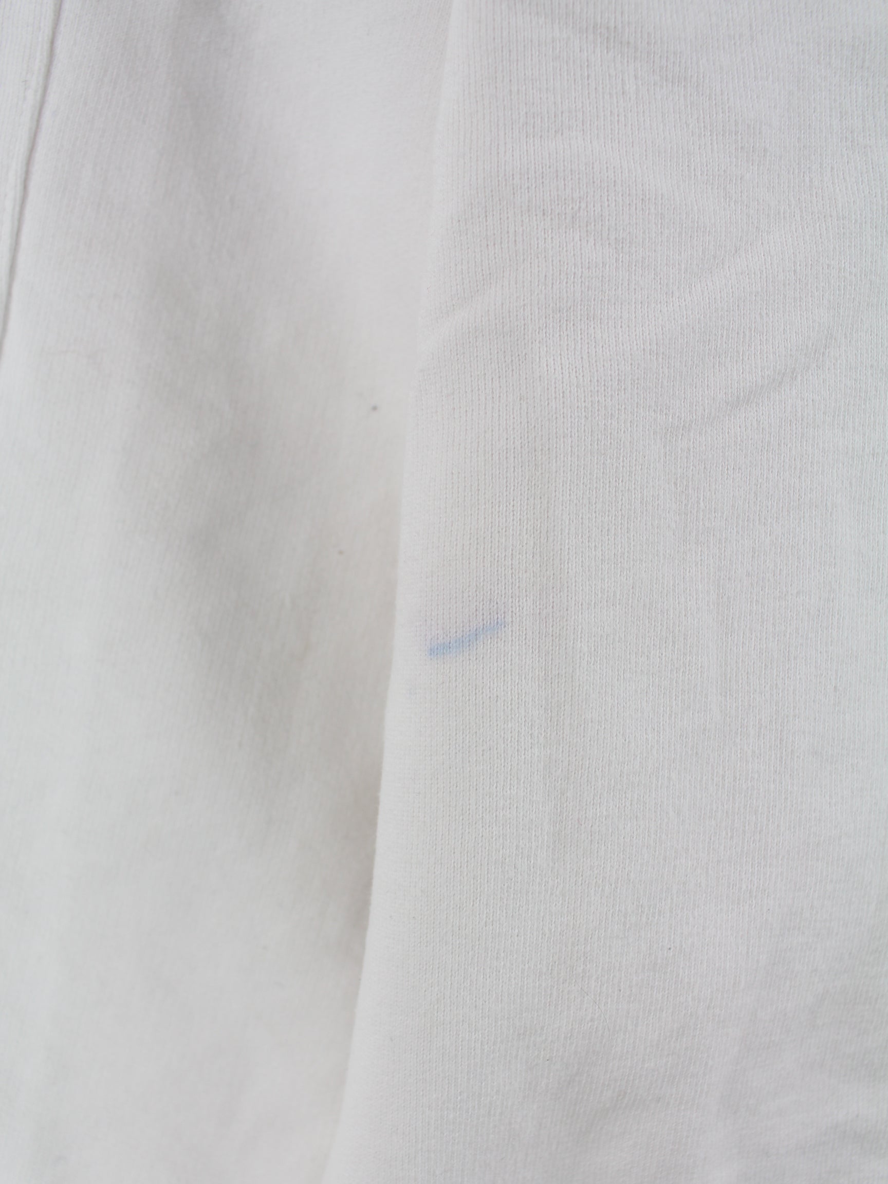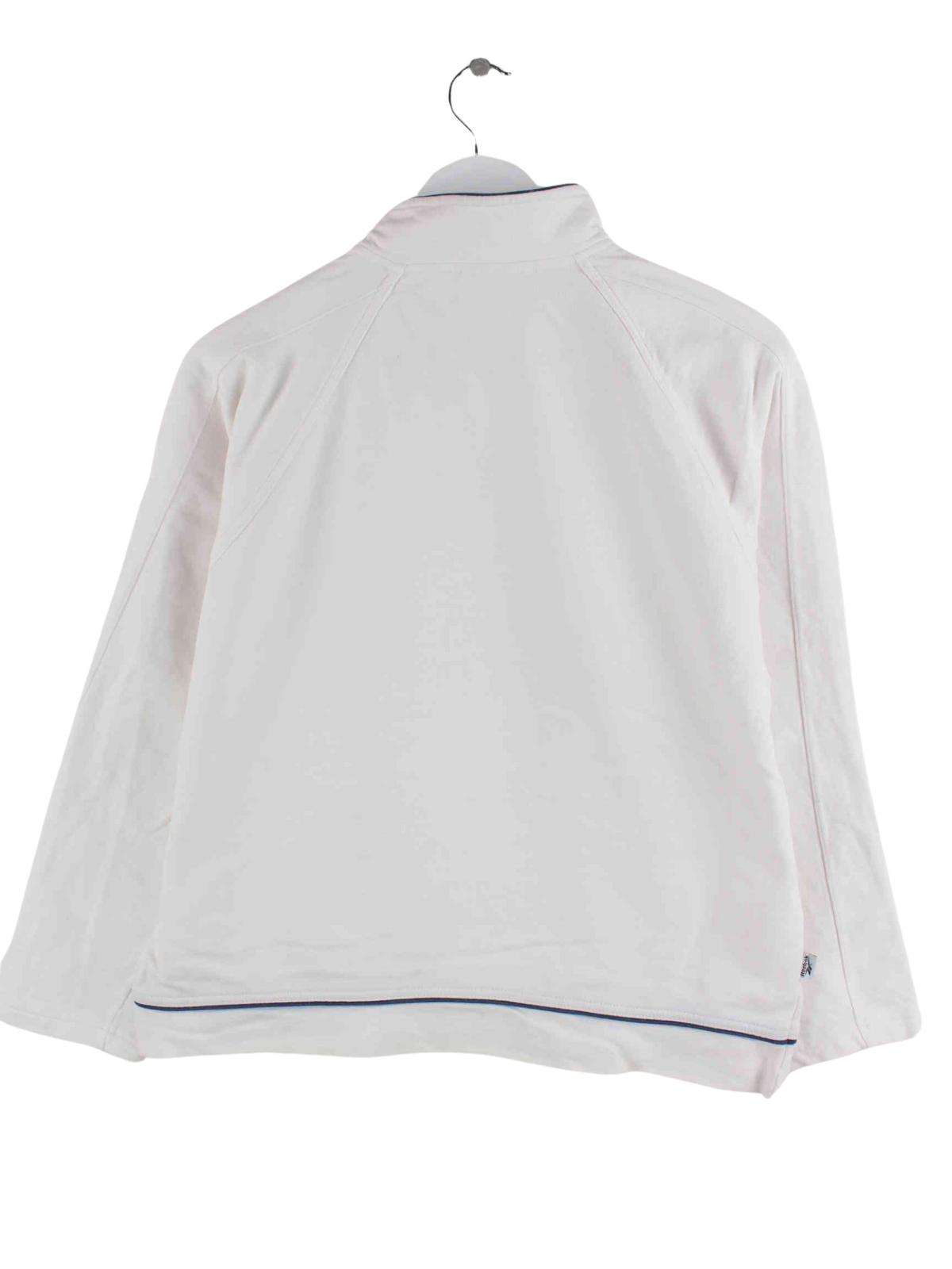 Weißer Sweater mit kurzem Reißverschluß vom Brand Reebok aus Anfang der 2000'er in Größe M. Er ist aus einer Baumwollmischung produziert und in gutem Zustand bei uns zu bekommen.