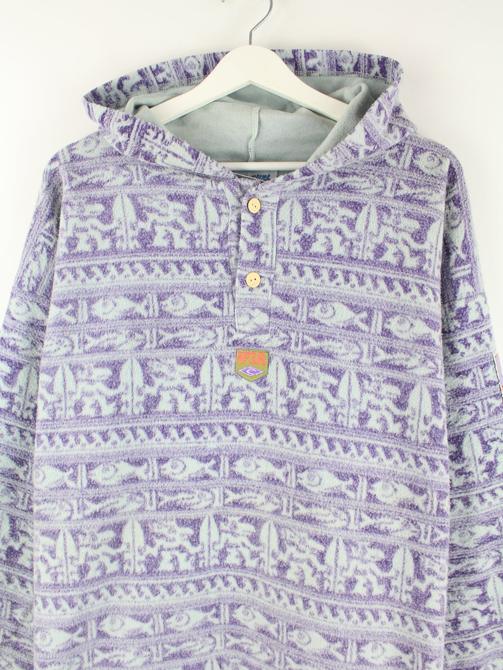Rip Curl 80s Vintage Crazy Pattern Half Zip Hoodie Lila XL