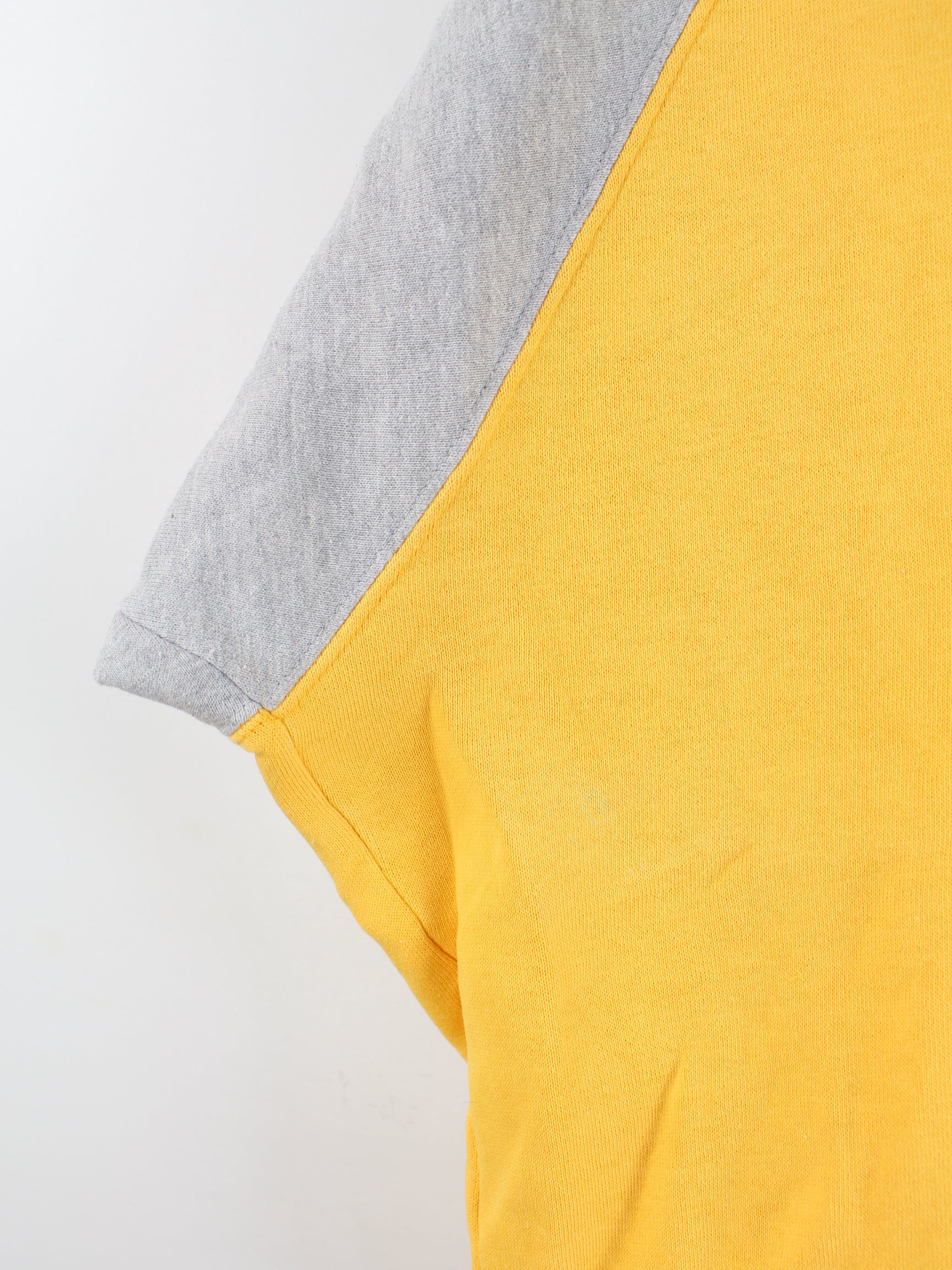 Gelber Sweater mit gestickten Motiven vom Label Roca Wear in Größe 3XL. Er ist aus einer Baumwollmischung produziert. Den Zustand würden wir als 'In Ordnung' bezeichnen (vergl. Bilder).