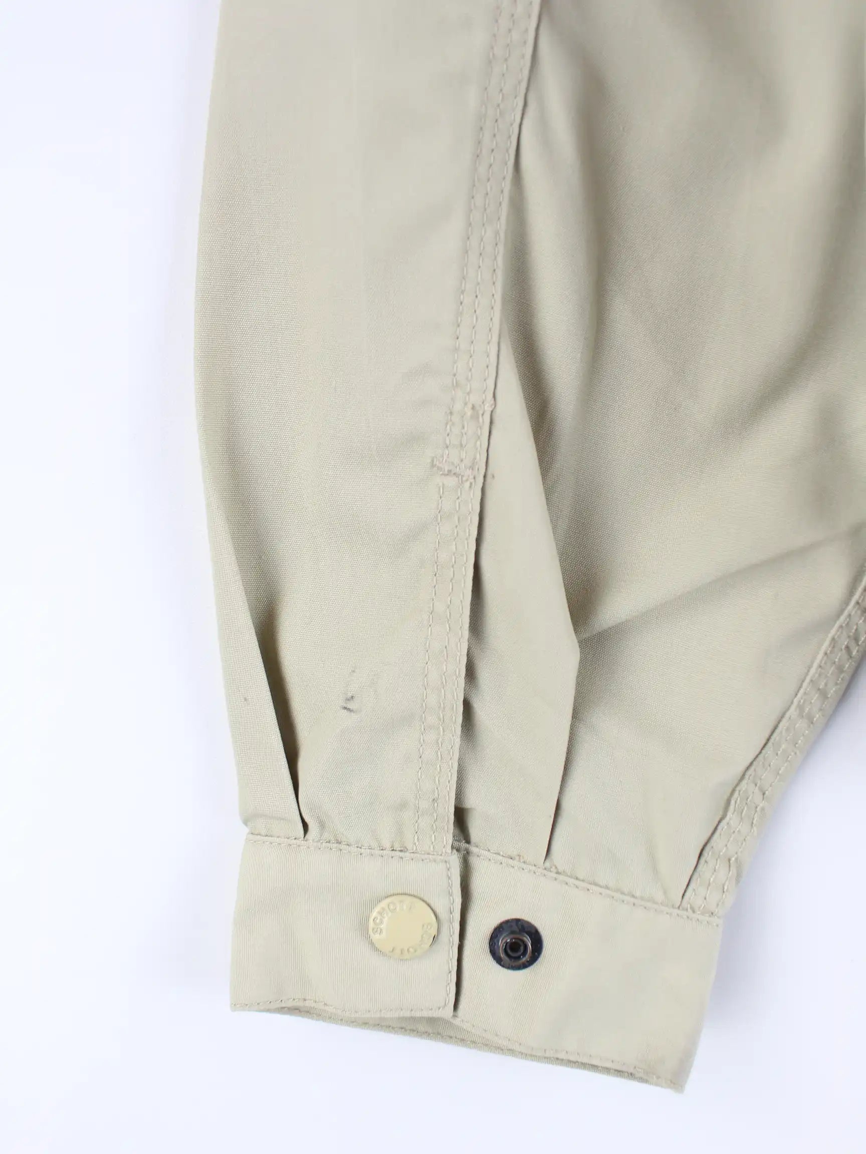 Leichte Jacke des Labels Schott in Größe M. Sie ist aus Synthetik produziert und in Beige im Bestand.