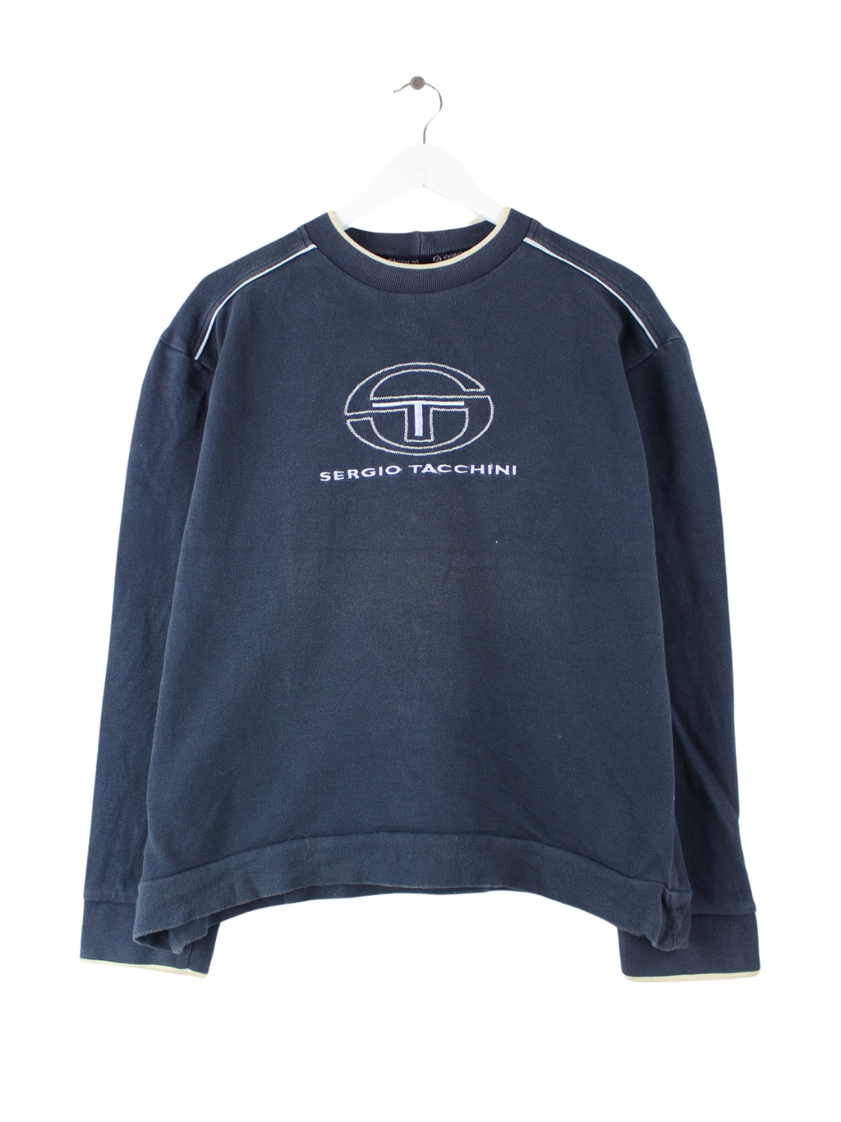 Sergio Tacchini 90s Vintage Embroidered Sweater Blau S