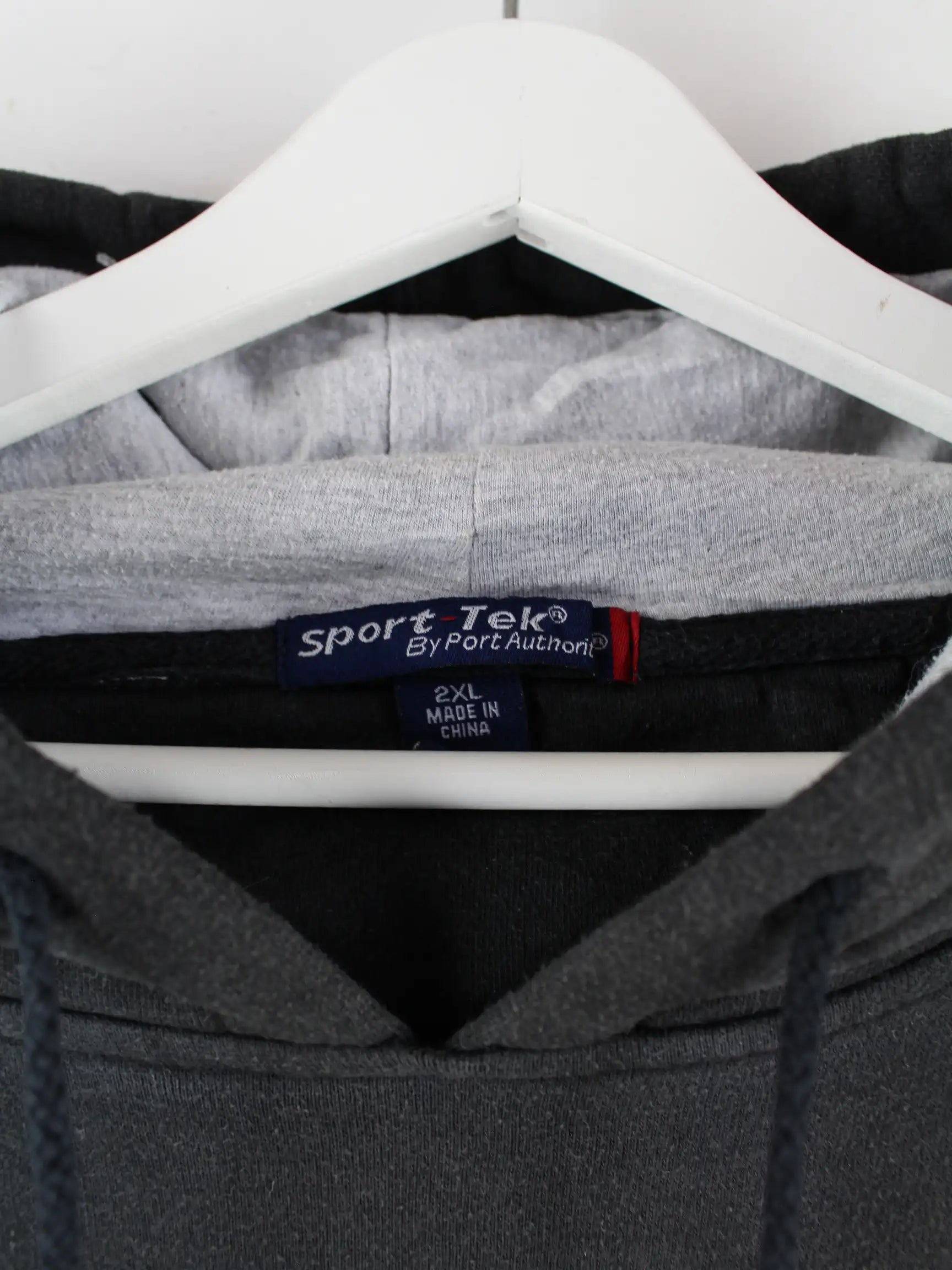 Hoodie der Marke Sport Tek mit gesticktem Logo in Größe XXL. Er ist aus einer Baumwollmischung angefertigt und in Schwarz auf Lager.