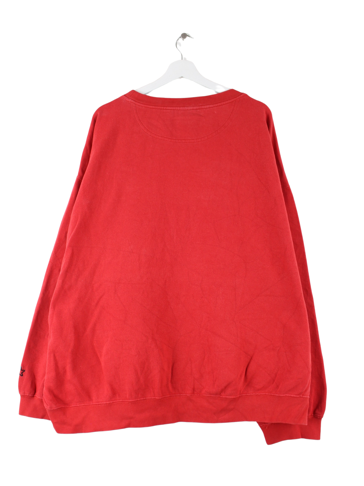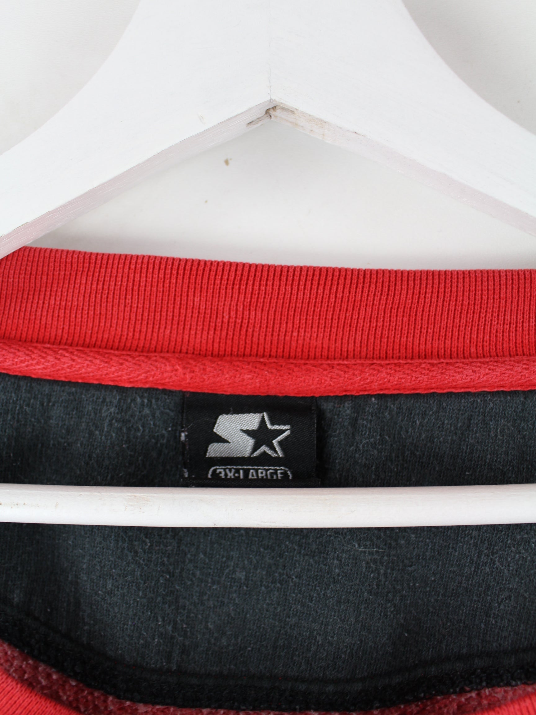 Roter Sweater mit Stickereien vom Label Starter in Größe 3XL. Er ist aus einer Baumwollmischung gefertigt und in gutem Zustand vorrätig.