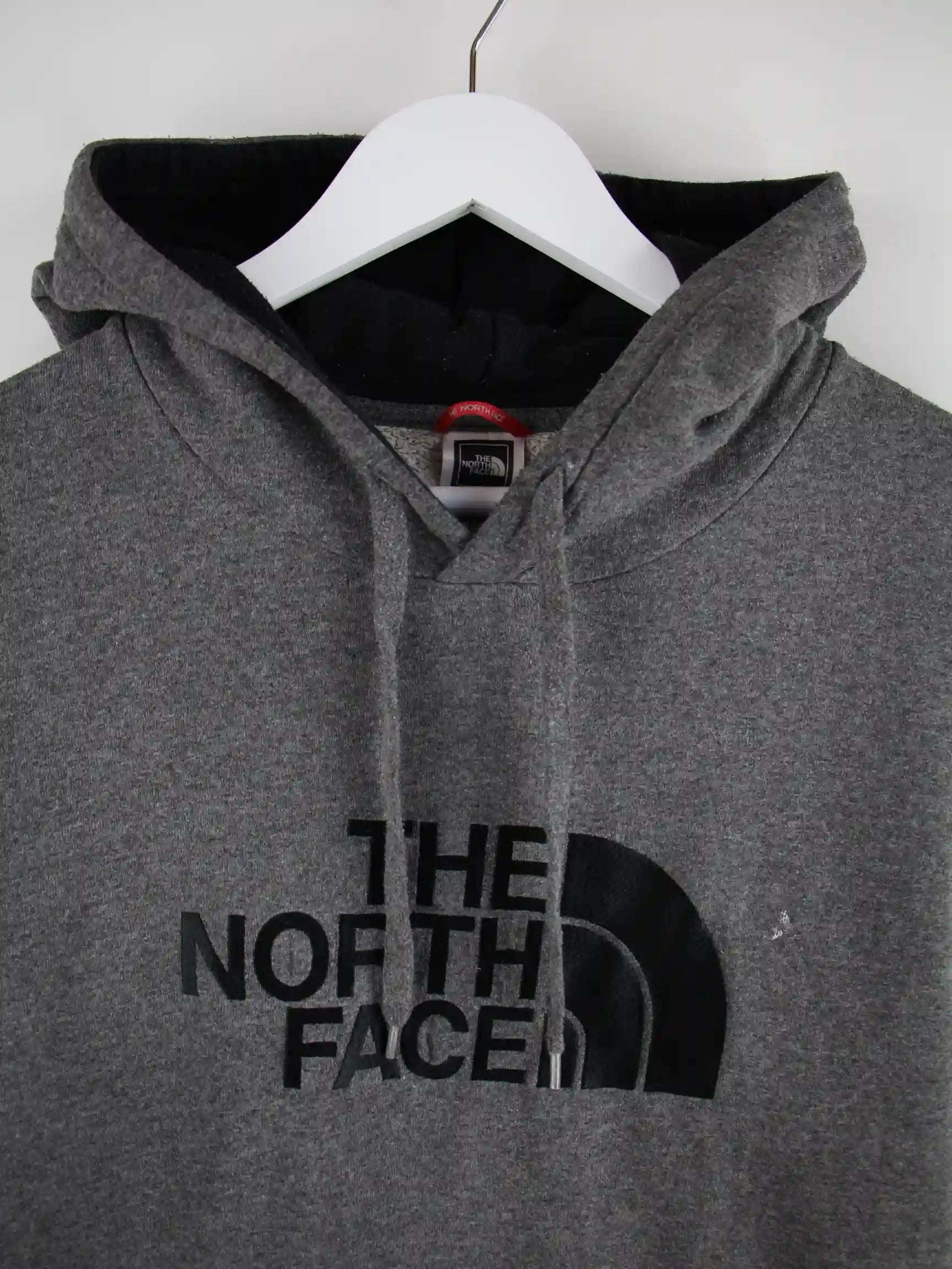 Grauer Hoodie vom Label The North Face in Größe M. Er ist aus einer Baumwollmischung produziert und in gutem Zustand zu haben.