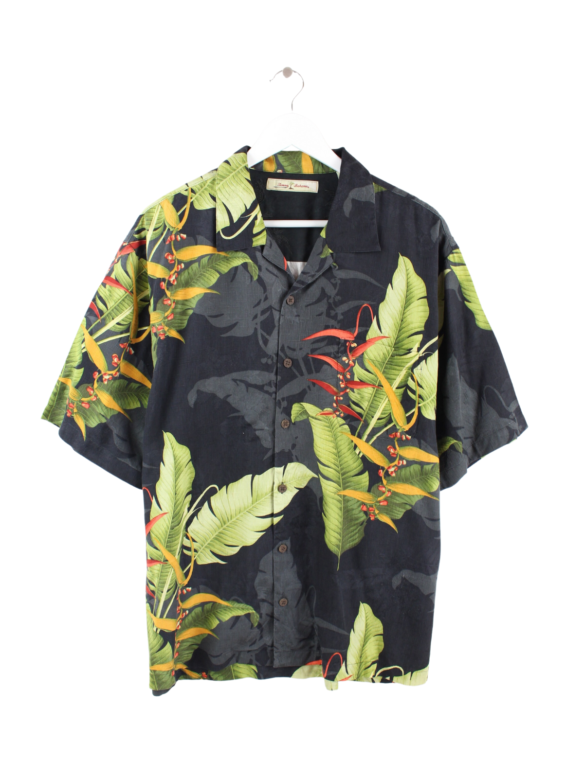 Tommy Bahama 100% Seide Hawaii Hemd Schwarz XL