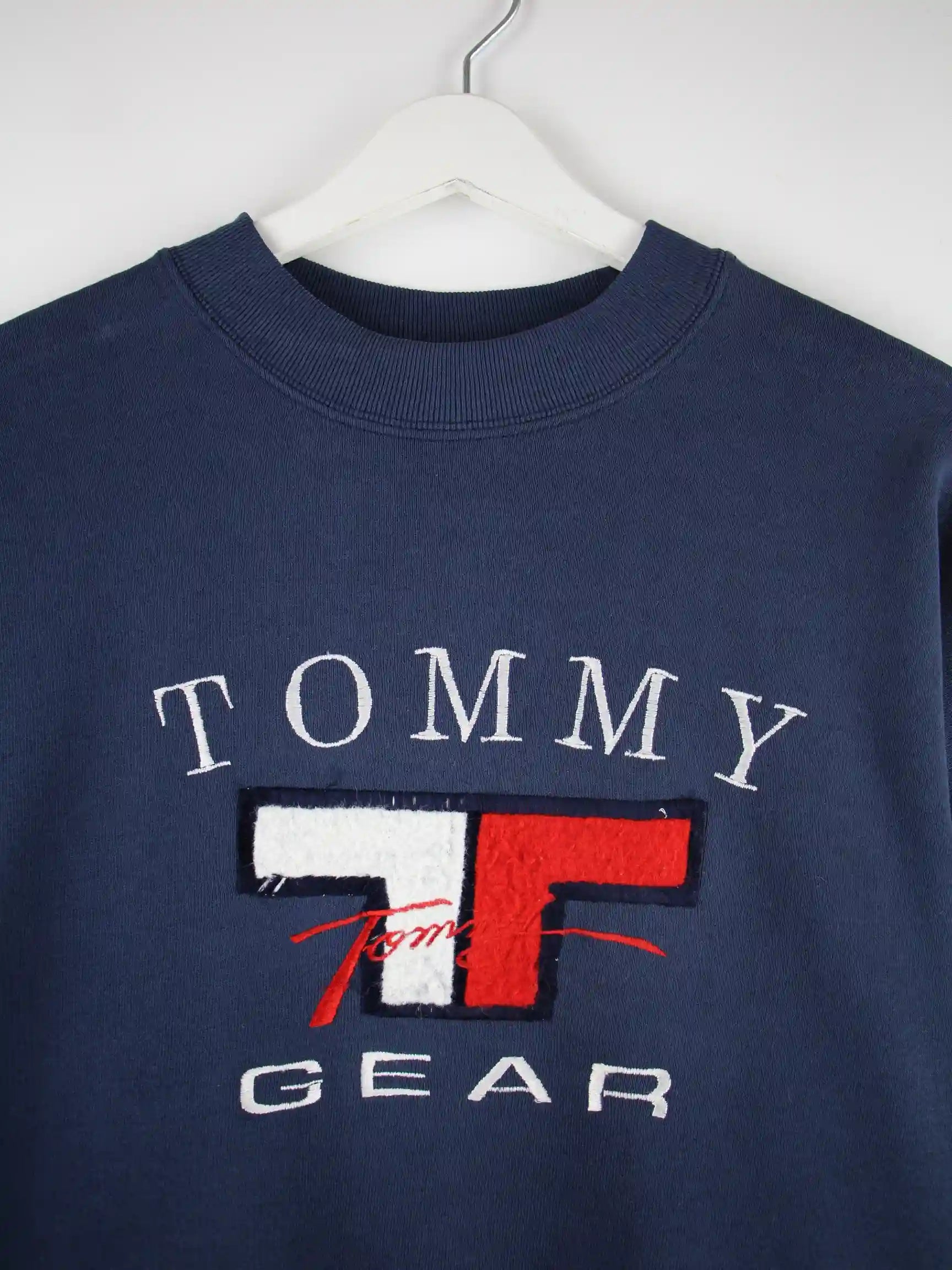 Sweater des Labels Tommy Hilfiger in Größe XL aus den 90'ern. Er ist aus einer Baumwollmischung gefertigt und in Blau auf Lager.
