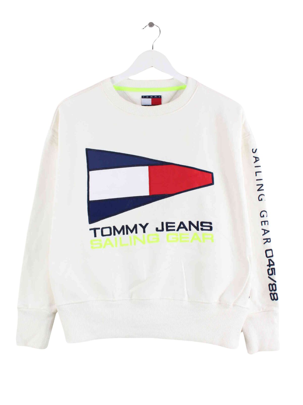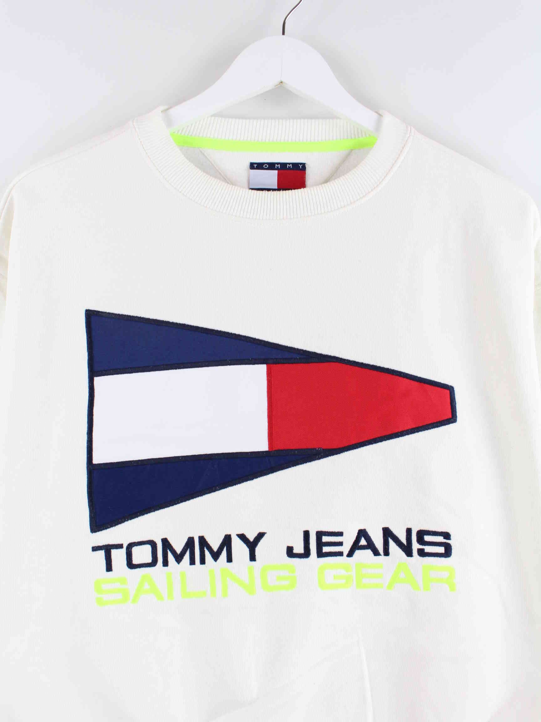 Sweater aus dem Hause Tommy Hilfiger mit Stick in Größe S. Er ist aus einer Baumwollmischung produziert und in Weiß zu bekommen.