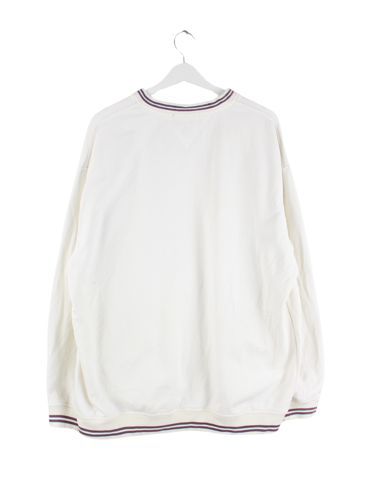 Sweater des Labels Tommy Hilfiger mit Stickereien in Größe L. Er ist aus einer Baumwollmischung gefertigt und in Weiß lieferbar.