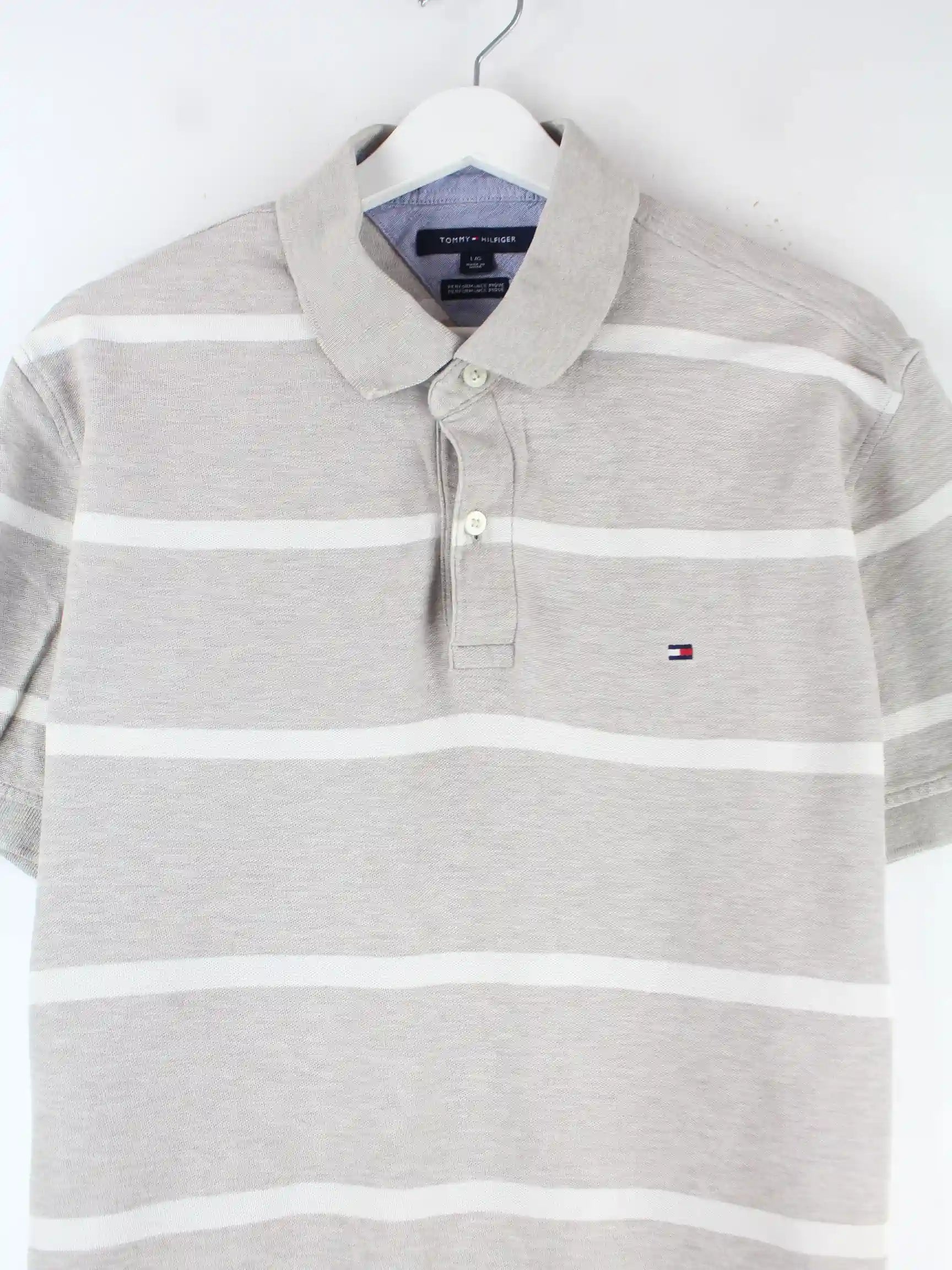 Poloshirt von Tommy Hilfiger in Größe L. Es ist aus Baumwolle produziert und in Grau bei uns vorrätig.