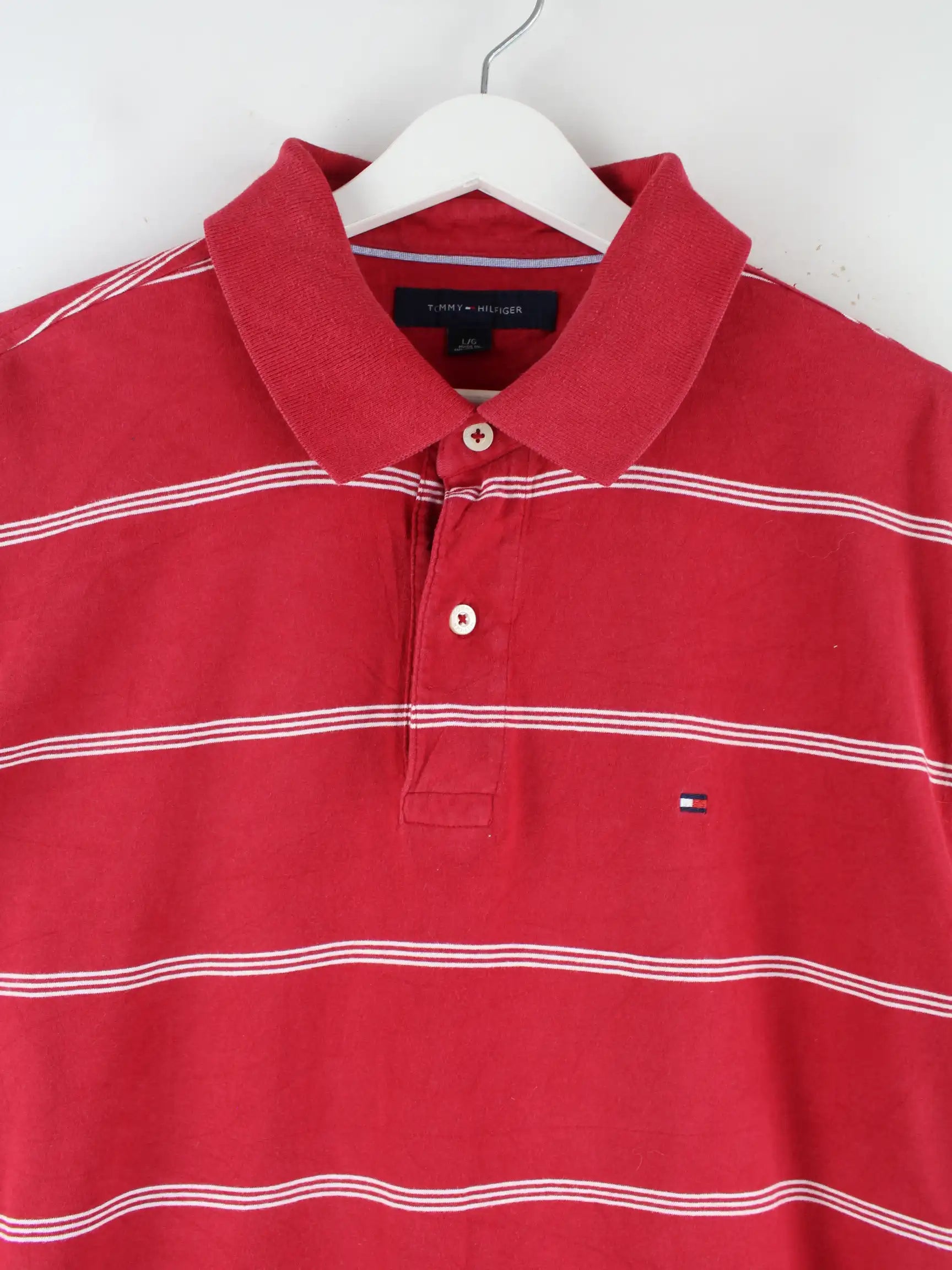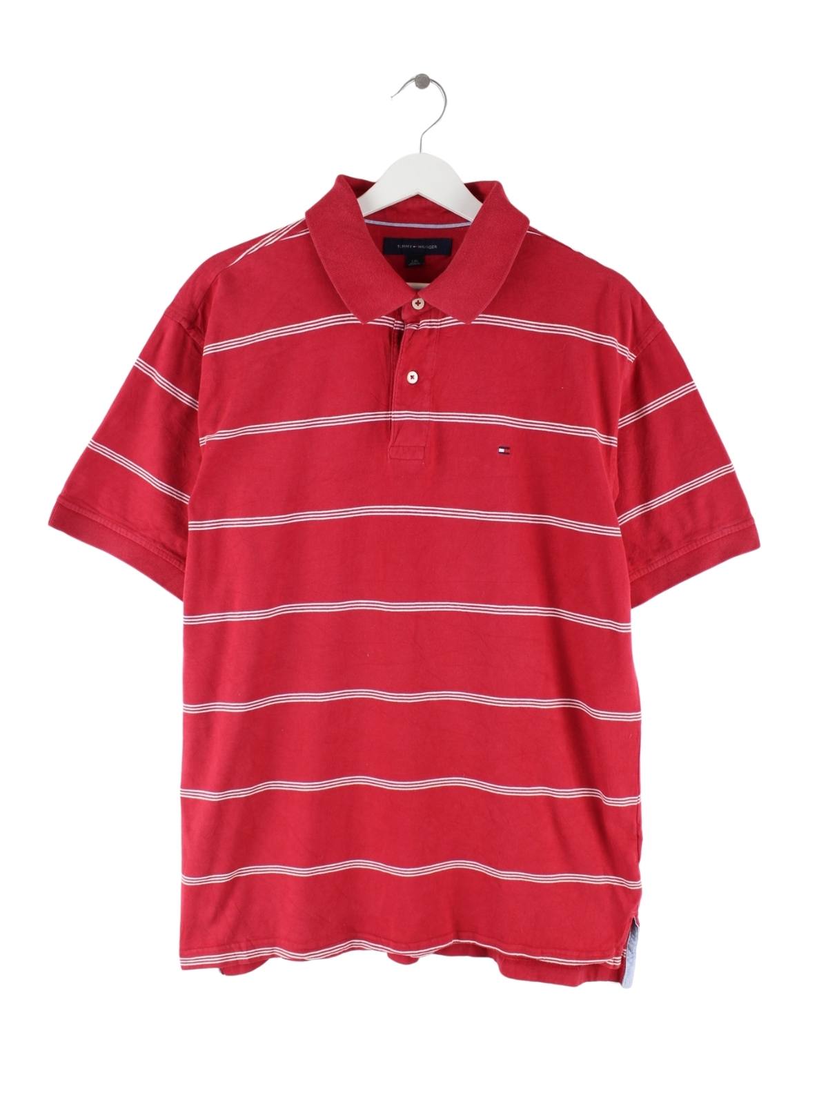 Poloshirt der Marke Tommy Hilfiger in Größe L. Es ist aus Baumwolle produziert und in Rot zu bekommen.