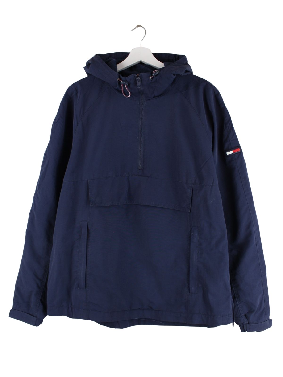 Blauer Windbreaker des Labels Tommy Hilfiger in Größe L. Er ist aus Synthetik produziert und in sehr gutem Zustand bei uns vorrätig.