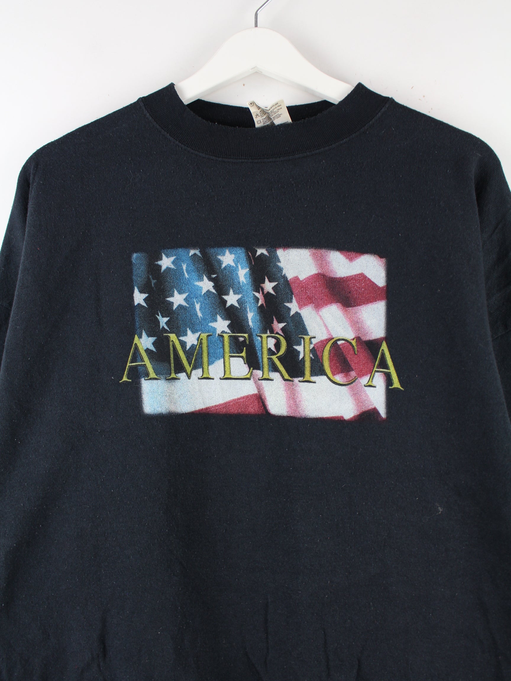 Tultex 90s Vintage America Print Sweater Schwarz XL