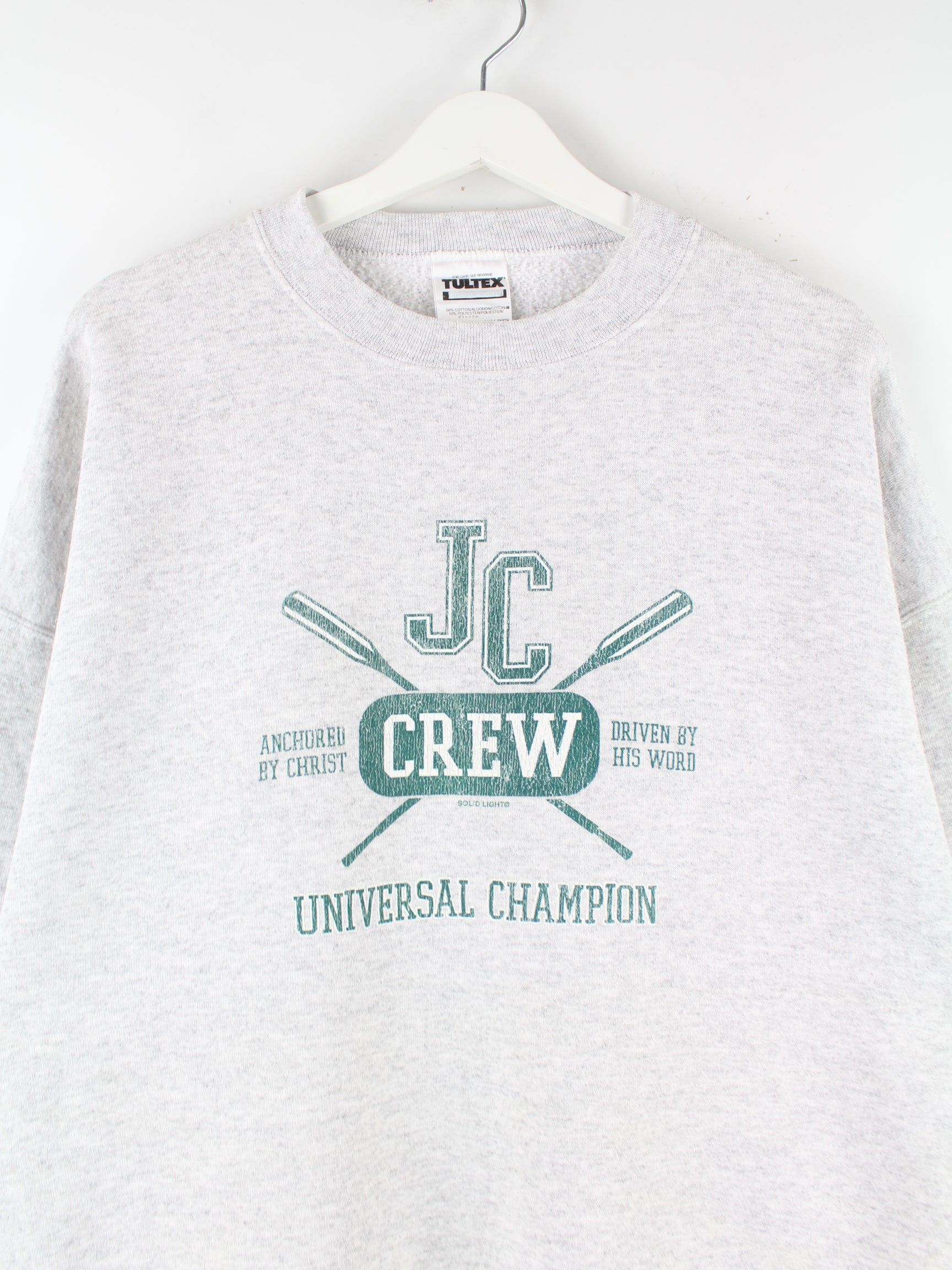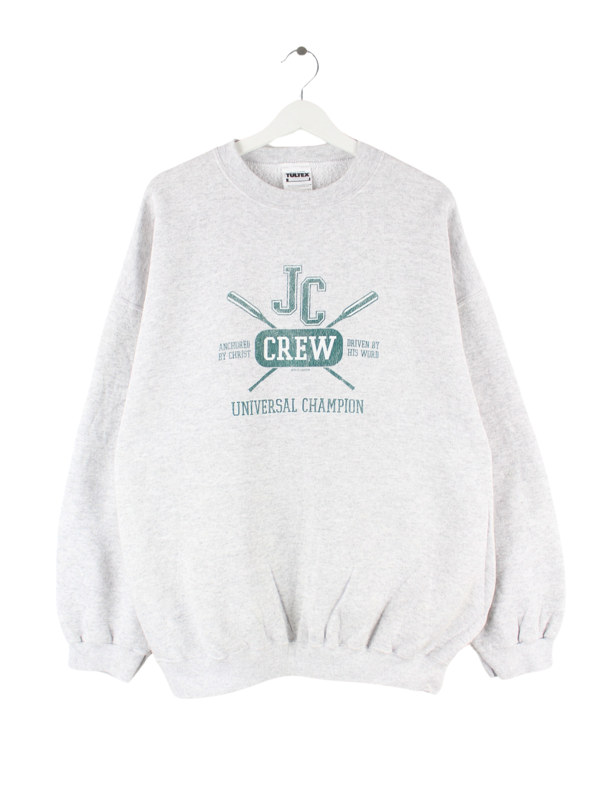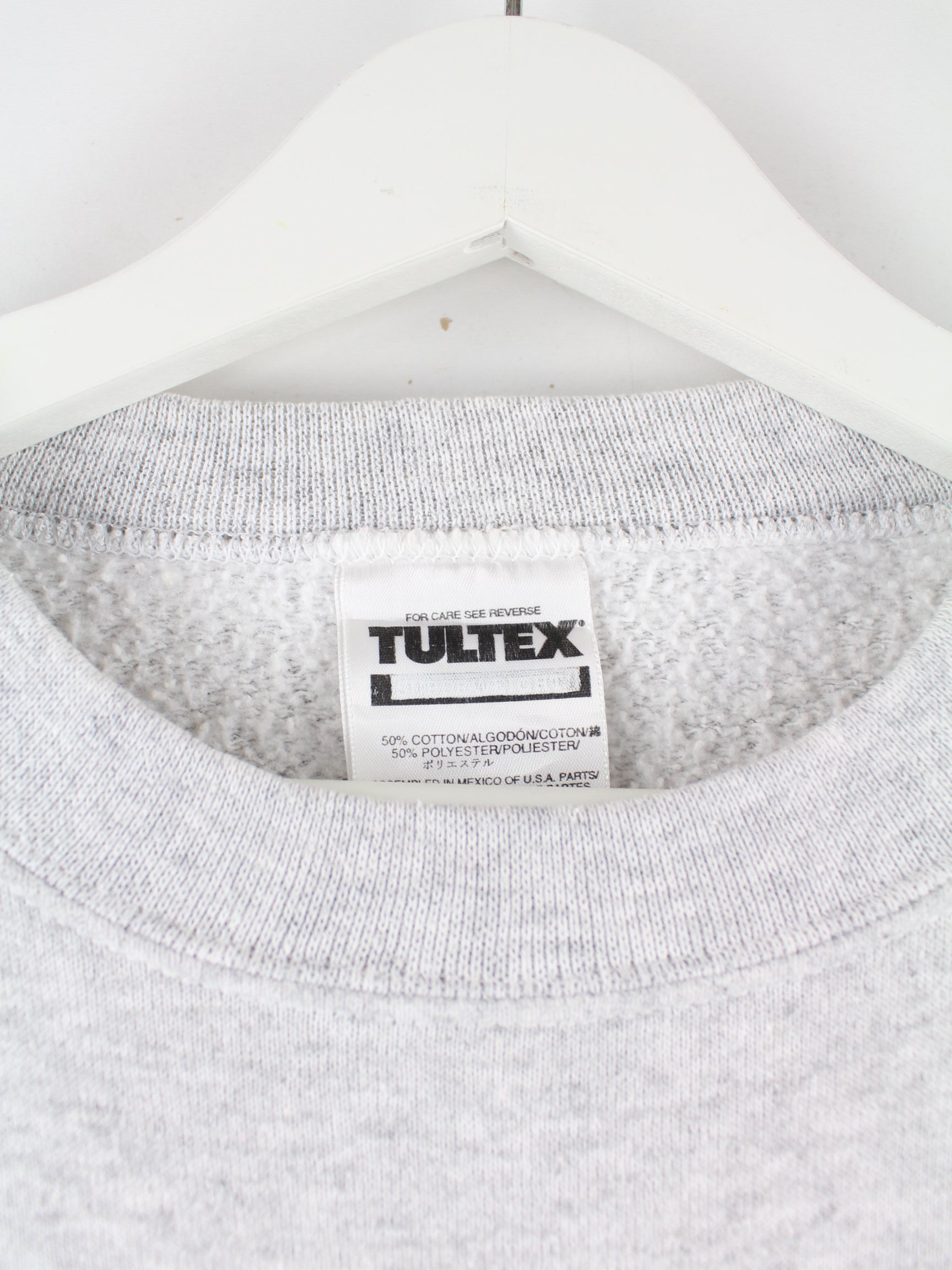Sweater von Tultex in Größe XXL aus den 90'ern. Er ist aus einer Baumwollmischung hergestellt und in Grau vorrätig. Mit seltenem Vintage Print.