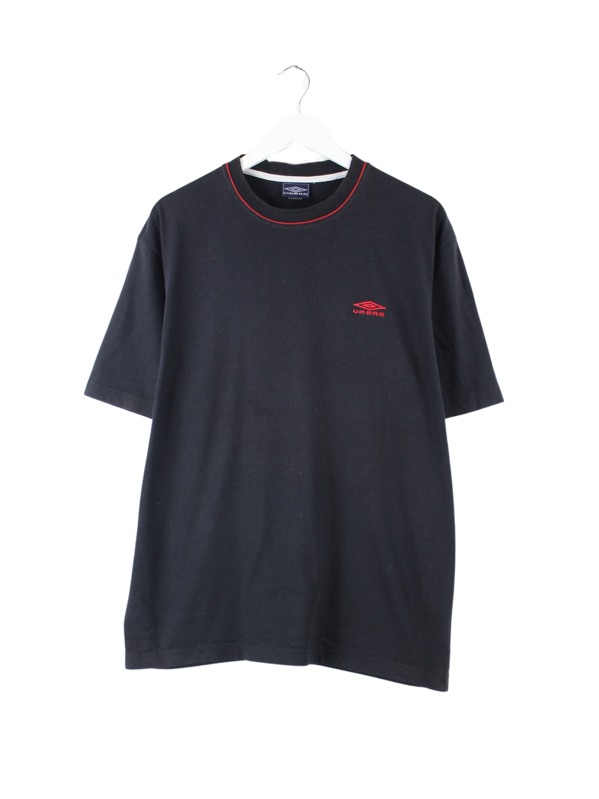 Schwarzes T-Shirt der Marke Umbro aus den 90'ern in Größe XL. Es ist aus Baumwolle gemacht und in sehr gutem Zustand zu bekommen.